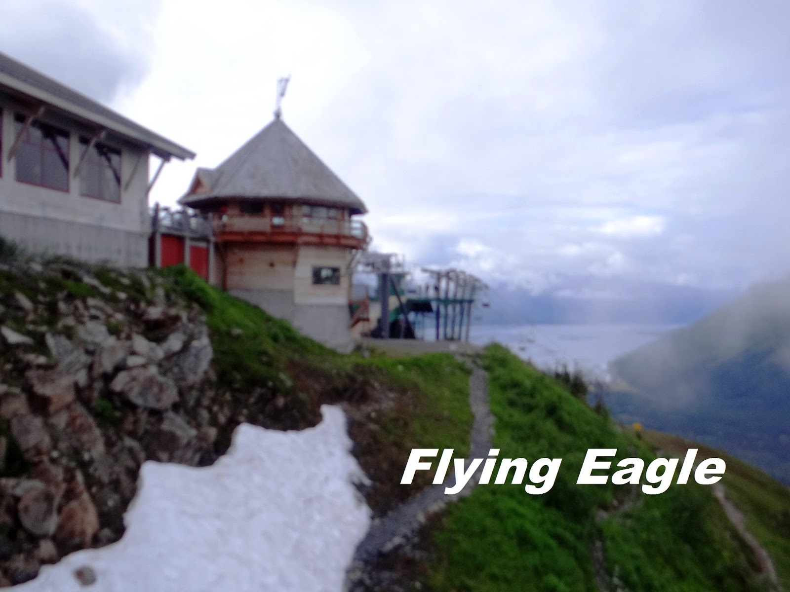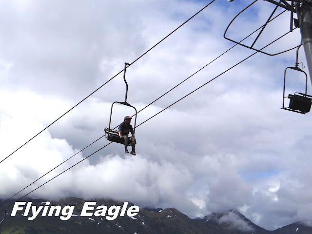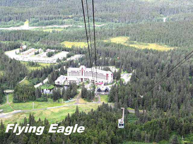 這天是我們在阿拉斯加倒數第三天了,行程是乘坐高空纜車上Mt. Alyeska。高空纜車就在我們住的Hotel Alyeska旁邊,走幾步路就可以去搭乘了,十分方便。這座山海拔3939英呎(1201公尺),不是太高,是登山、健行和滑雪的勝地。除此之外,也有人把越野單車運上山,在崎嶇的路上磨鍊自己的能耐。