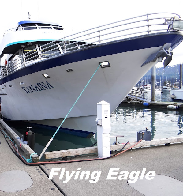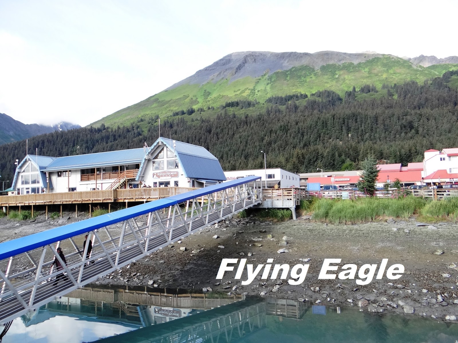 我們在住宿的Holiday Inn Express用過早餐後,從飯店後的木板步道前往我們的船Tanaina。也許是因為光線不一樣吧,清晨的Seward呈現出和黃昏時分不同的風貌。清晨的山很明顯有三層顏色:墨綠、鮮綠和灰,不留心還真看不到。