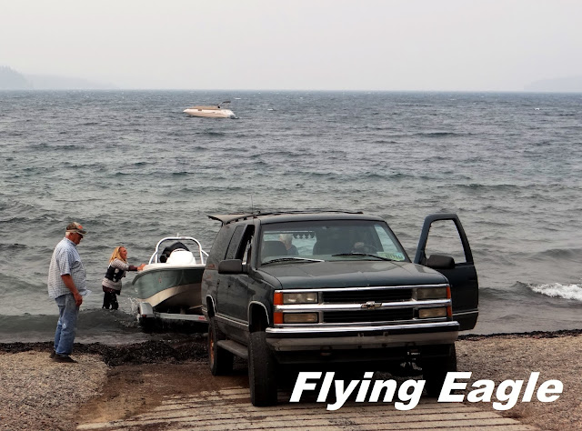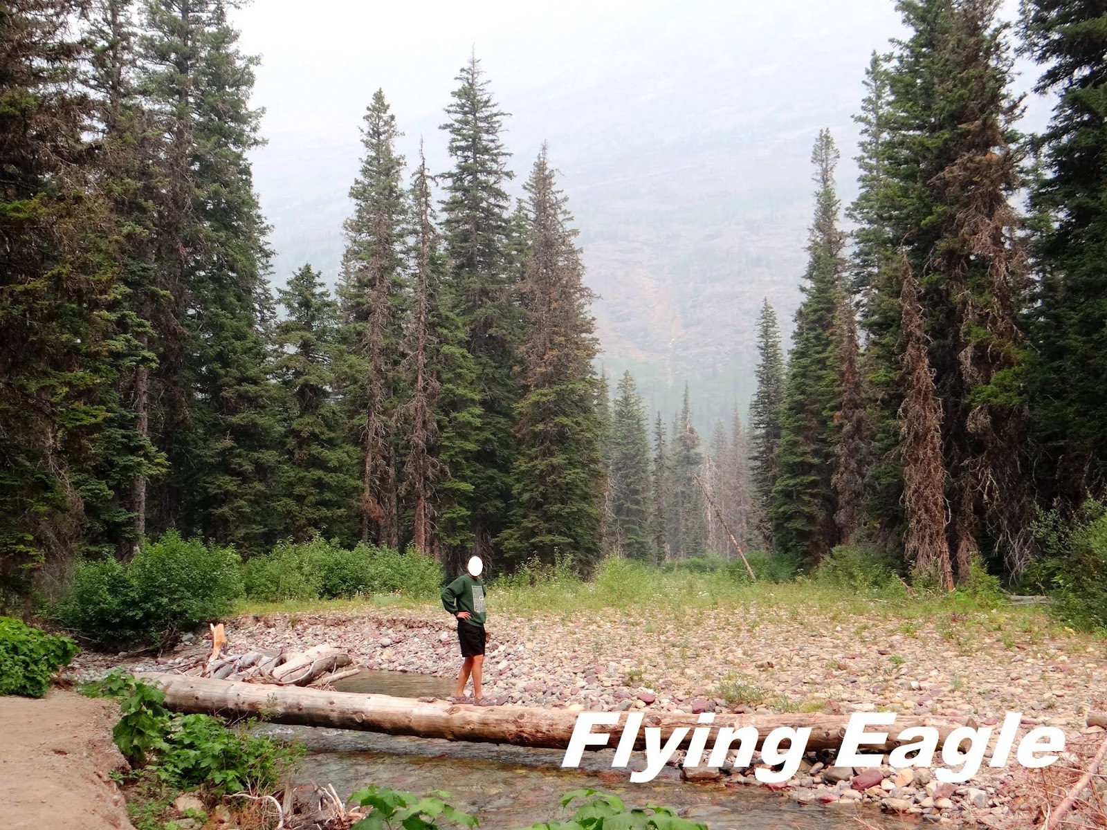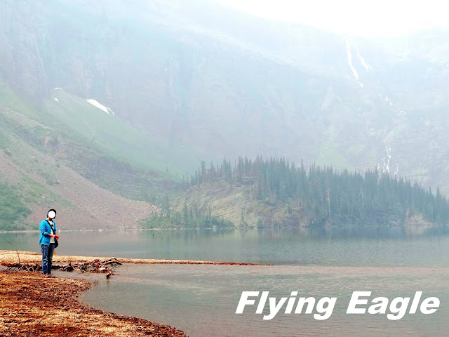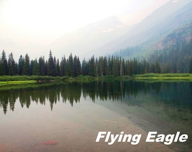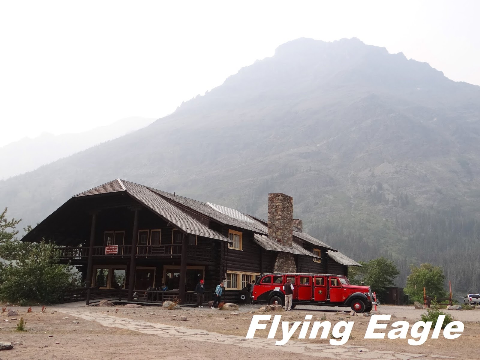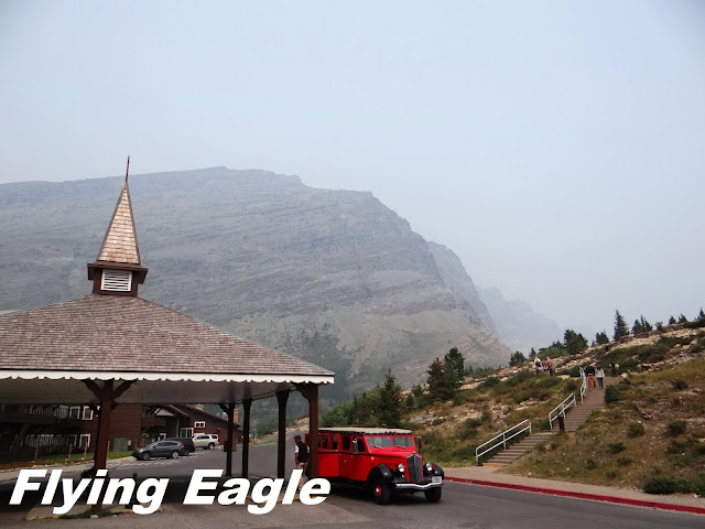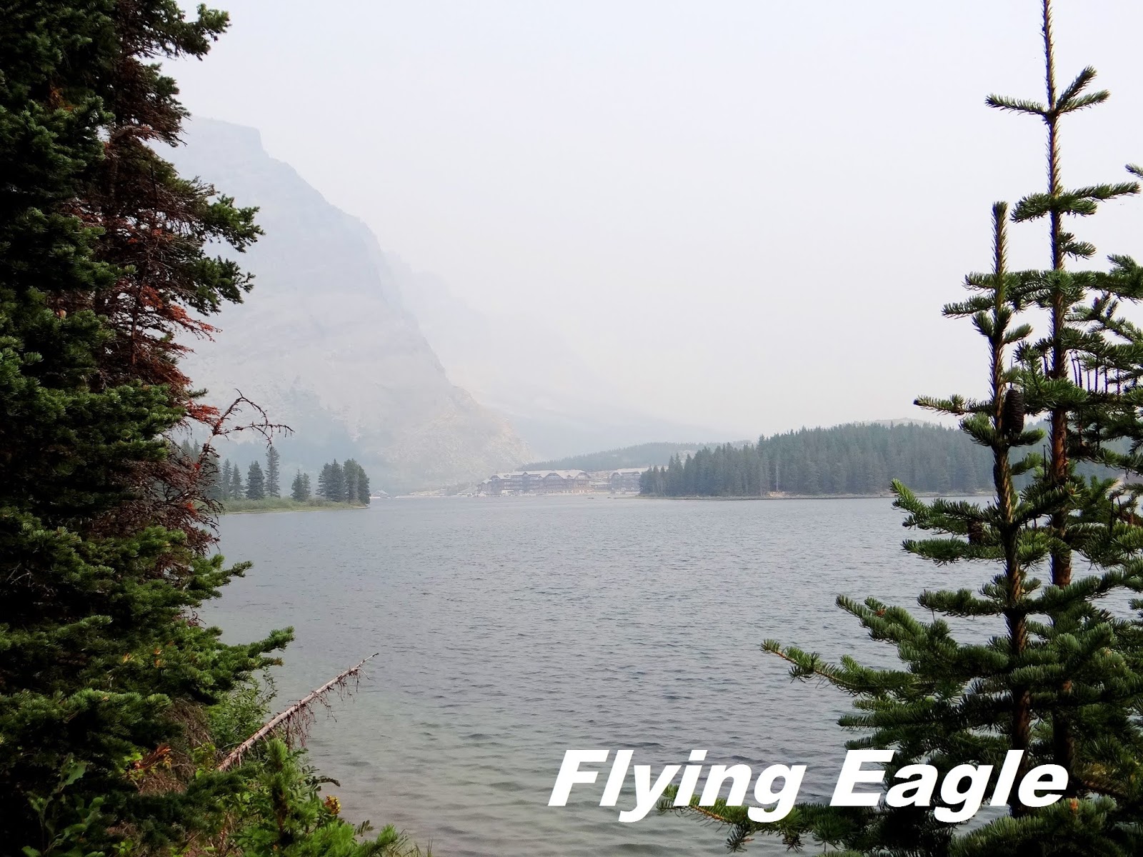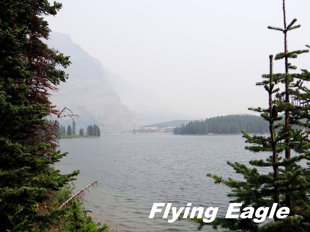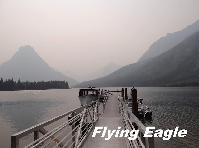 我們當晚原本訂的住處在第一大湖麥當諾湖(Lake McDonald)的東北角,因火災關係,被安排入住阿普加區(Apgar)的木屋,位在麥當諾湖的西南。我們在湖邊漫步,見有人在煙霧中乘風破浪。一位老先生和我們聊起天來,還從車上拿出自種的玉米讓我們品嚐。我本不知玉米可生吃,一咬下去,香甜無比,欲罷不能。有時旅途中的偶遇,讓人印象深刻,更勝風景!阿普加木屋的服務人員態度不好,打掃也不盡責。我被床上的虫咬了多處,迄今年餘尚未痊癒,實在對這公園既愛又恨!