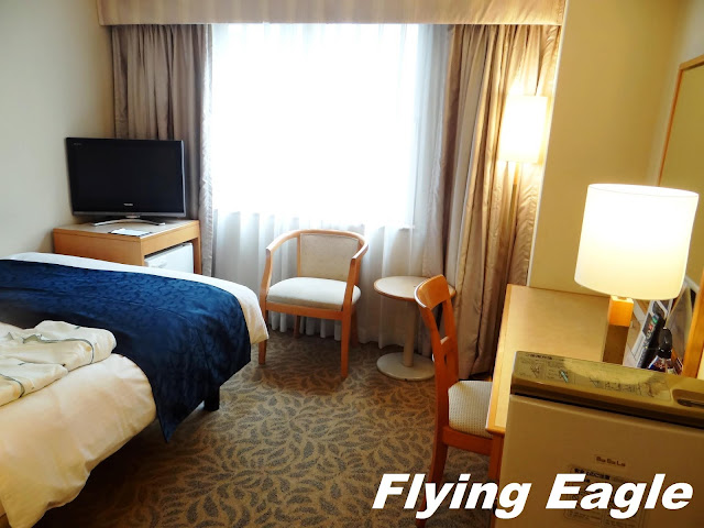 東京新大谷飯店(Hotel New Otani Tokyo)位於千代田區,是為了1964年東京奧運會而興建的。它曾是東京最高的建築,在日本人心目中具有相當地位。它的交通便利,東京地鐵好幾條線都經過,而機場的利木津巴士亦在此設站。新大谷共有三棟大樓,樓與樓間有通道連接,剛到時真的覺得像迷宮一樣。房間和浴室都很寬敞,為日本少見。我們房裡甚至有個角落擺了沙發茶几,儼然像個小客廳。