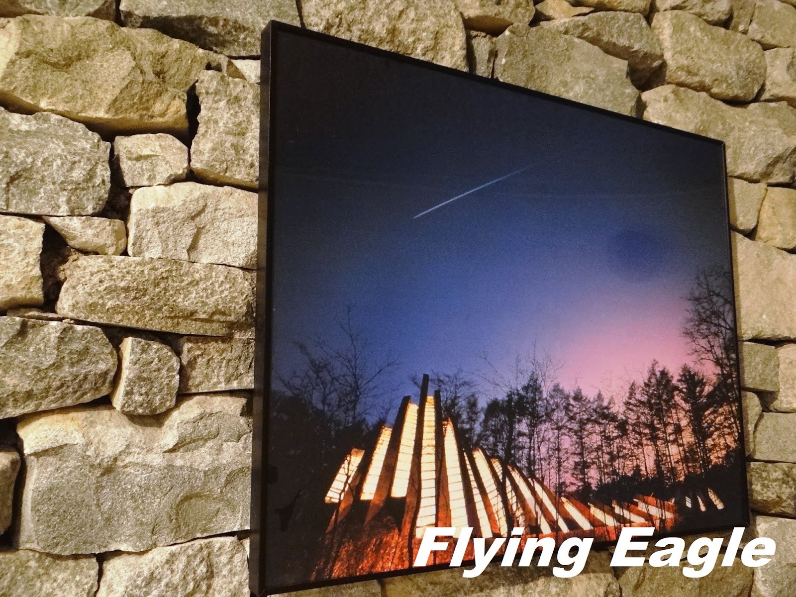 妳的答案正確,圓球是燈。我們到高原教堂時,正有人在林間施工,把圓球掛到樹上。燈的材質也很天然,和教堂很搭。