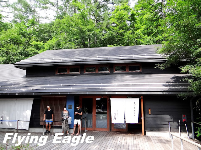 我們接著前往石之教堂,不料教堂因故暫時關閉,要數小時後才會重開,於是我們只好先去榆樹街小鎮午餐。榆樹街小鎮位於榆樹茂密的河岸旁,距高原教堂步行只消數分鐘。這裡有一些店家,讓遊客可吃飯逛街,但仍不失悠閒的氣氛。不少網友推薦的川上庵炸蝦蕎麥麵和永井農場冰淇淋,我們都一一品嘗,果然名不虛傳。