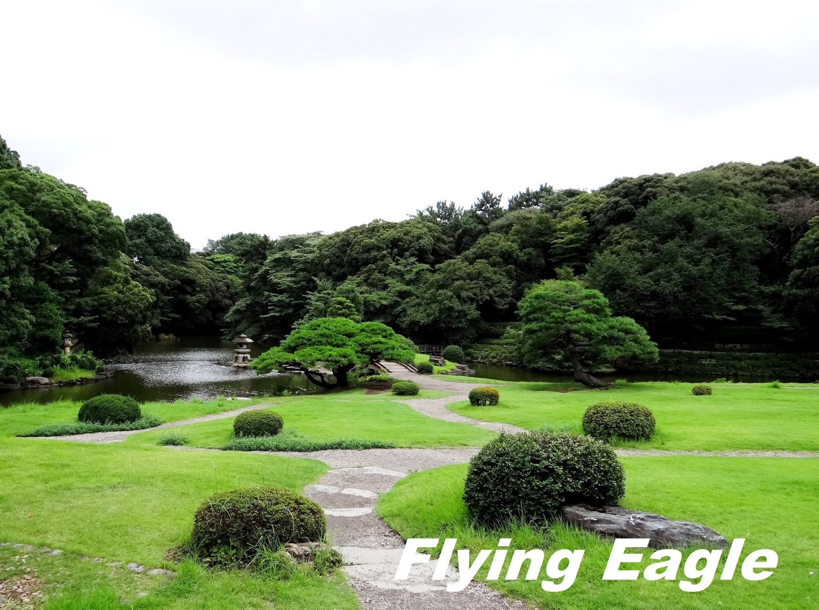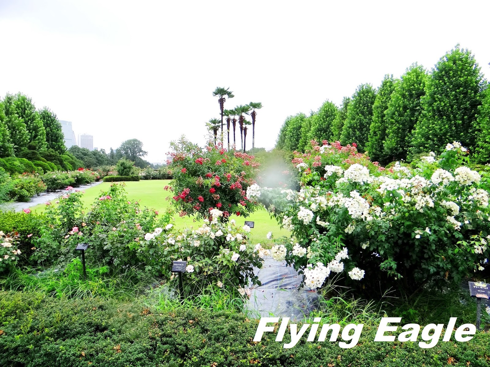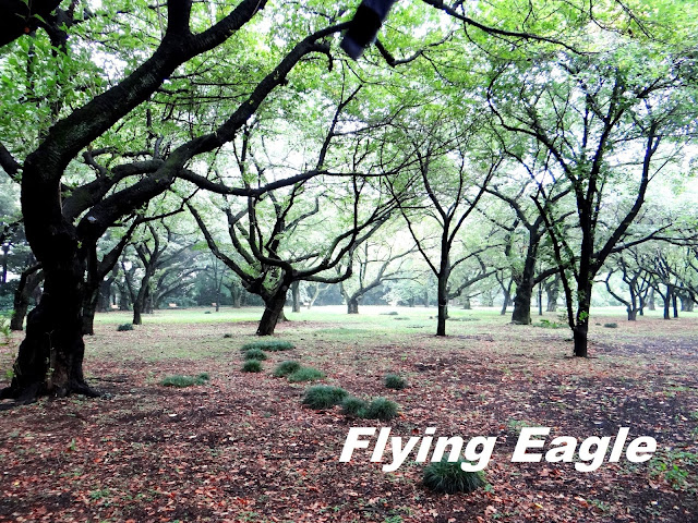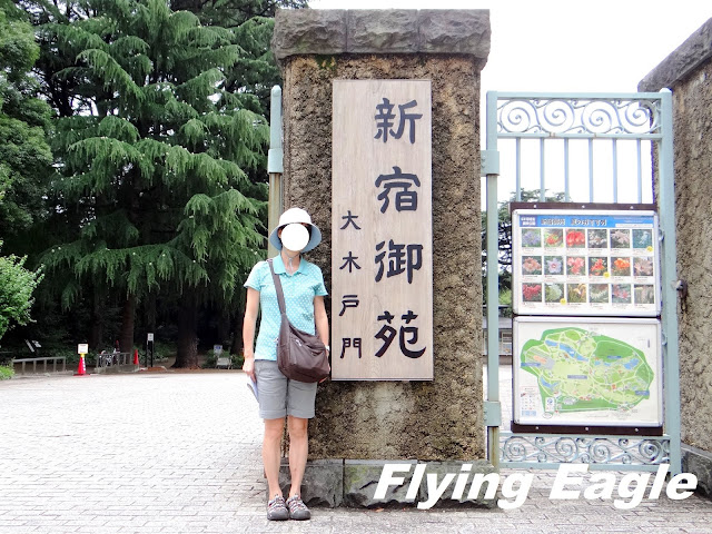 接著我們逕赴新宿御苑,這裡在江戶時期原是封建領主的宅第,二次大戰後改為對大眾開放的公園。新宿御苑位於喧鬧的新宿區,佔地廣闊,綠意盎然,是塵囂之中讓身心得以休憩的綠洲。我們從大木戶門入園,門上陳列了園區地圖和當季花卉一覽,展現日本人做事的仔細。在平坦的綠地旁有棟高樓引人注目,那是NTT DoCoMo代代木大廈。這棟建築很像紐約的帝國大廈,如果連天線也算在內,它是東京最高的摩天大樓。新宿御苑擁有日式、英式、法式主題的庭園,還幾乎囊括了全日本的櫻花品種。公園中各種美麗的花卉,按季綻放,展現不同風姿。可惜我們到訪時陰雨綿綿,風景少了幾分顏色。值得一提的是園中有個台灣閣,是為了慶賀昭和天皇結婚,由當時在台灣的日本人募款建造的。台灣閣以台灣杉和台灣檜木建成,造型古典。