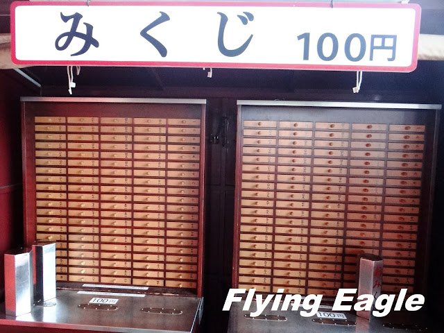 繼續往前就是淺草寺本堂,又稱觀音堂。堂前讓人求籤的地方引發我們的好奇,籤文放在一個個小抽屜裡,抽屜上的號碼全是漢字而非阿拉伯數字。求籤指示寫著,如果抽到吉,恭喜你;如果抽到凶,把它繫在樹上,不幸就留在那裡。這種趨吉避凶的方法,倒是挺阿Q的。原本我們下個行程要去東京的地標晴空塔,但風雨交加之下不得不打消念頭,只能從淺草寺遙望。