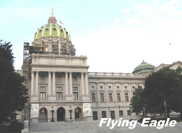 賓州州府不僅藝術氣息濃厚,而且清楚表明立國之初所秉持的信仰,這是其他州府較為少見的。在正門口的階梯前,兩側各有一塊大石頭,一邊刻著「我們信靠神」(In God We Trust),另一邊刻著「真理是權威」(Truth For Authority)。很多時候人的想法是反其道而行,信靠有辦法的人,而且有權的人說的便是真理,這短短兩句話實在值得世人深思。在州府前還有一條長長的石椅,椅背上刻著「祈禱有時,爭戰有時」(There Is A Time To Pray And A Time To Fight)。據信這句話是出自彼得‧穆蘭堡(Peter Muhlenberg)牧師,當時美國還在和英國打戰,華盛頓總統親自要求穆蘭堡從軍且率領一個兵團,穆蘭堡在入伍前的最後一篇講道就用這句話宣告,為真理而戰的時刻已經來到。