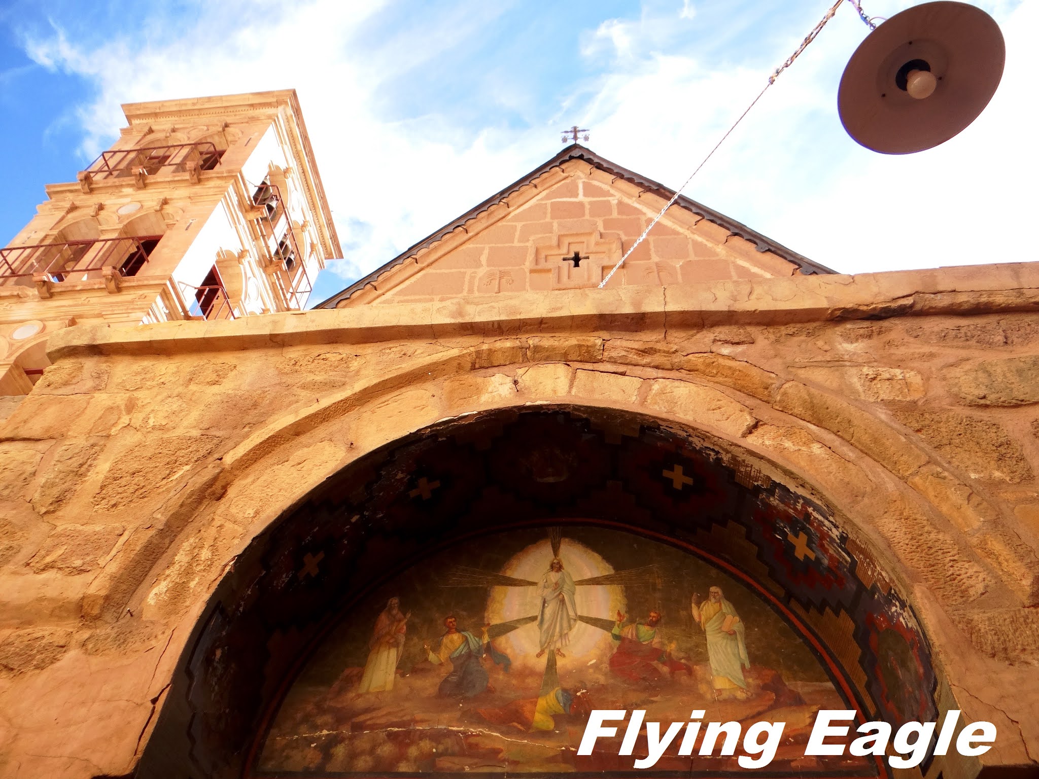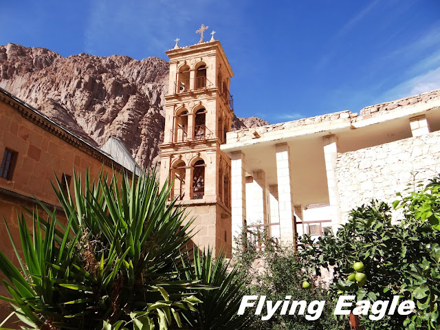 翌日一早,行程的第一站是位於西乃山腳的聖凱瑟琳修道院(St. Catherines Monastery)。修道院興建於公元六世紀,歷史悠久,並於2002年被列為世界文化遺產。修道院的名字來自四世紀初殉道的女信徒。我們一下遊覽車便有好幾隻羊守在車門外,彷彿列隊歡迎。修道院的高牆以磚石砌成,卻只見一道極小的門,不成比例。牆上高處懸著兩間小木屋,原來以前要進出修道院靠的就是這木屋。來客先拉繩搖鈴,院內的人則利用絞盤以木屋運送來客,有點像今日電梯的概念。修士和修女與世隔絕,得以安心靜修。