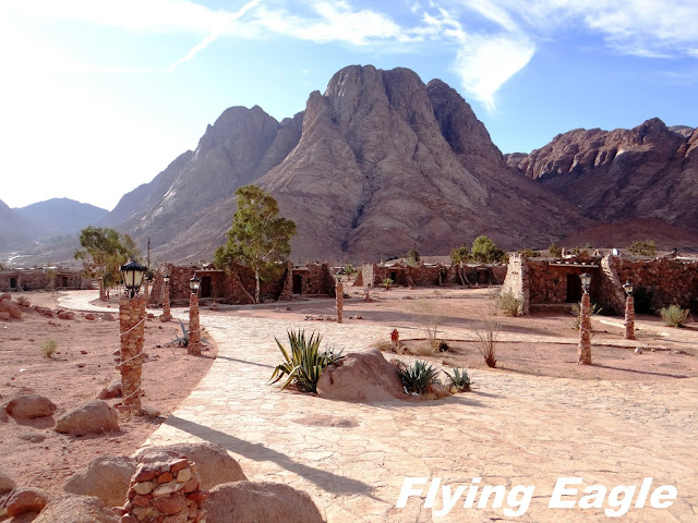 從約旦前往埃及若走陸路,必須取道兩者之間的以色列,所以光是過海關便頗費周章。離開約旦進了以色列,然後由以色列出境進入埃及,三國的海關人員都慢吞吞,讓人等得心急。我們抵達埃及時已是晚上,氣溫驟降。沙漠的晝夜溫差極大,彷彿從盛暑進入寒冬。當年以色列人出埃及時,「日間耶和華在雲柱中領他們的路,夜間在火柱中光照他們,使他們日夜都可以行走。日間雲柱,夜間火柱,總不離開百姓的面前。」(出埃及記13:21-22) 以前讀到這裡,覺得雲柱火柱是為了指路,並代表神的同在。來到這片荒漠實地體驗,才明白雲柱在日間可遮蔽烈日,而火柱則於夜間帶來溫暖,當中實在充滿了神的慈愛。我們的住處聖凱瑟琳度假村位於西乃山下,我們就像當年的以色列人,在西乃曠野的山下紮營。度假村略有規模,落成時埃及總統穆巴拉克還曾親臨主持啟用典禮。