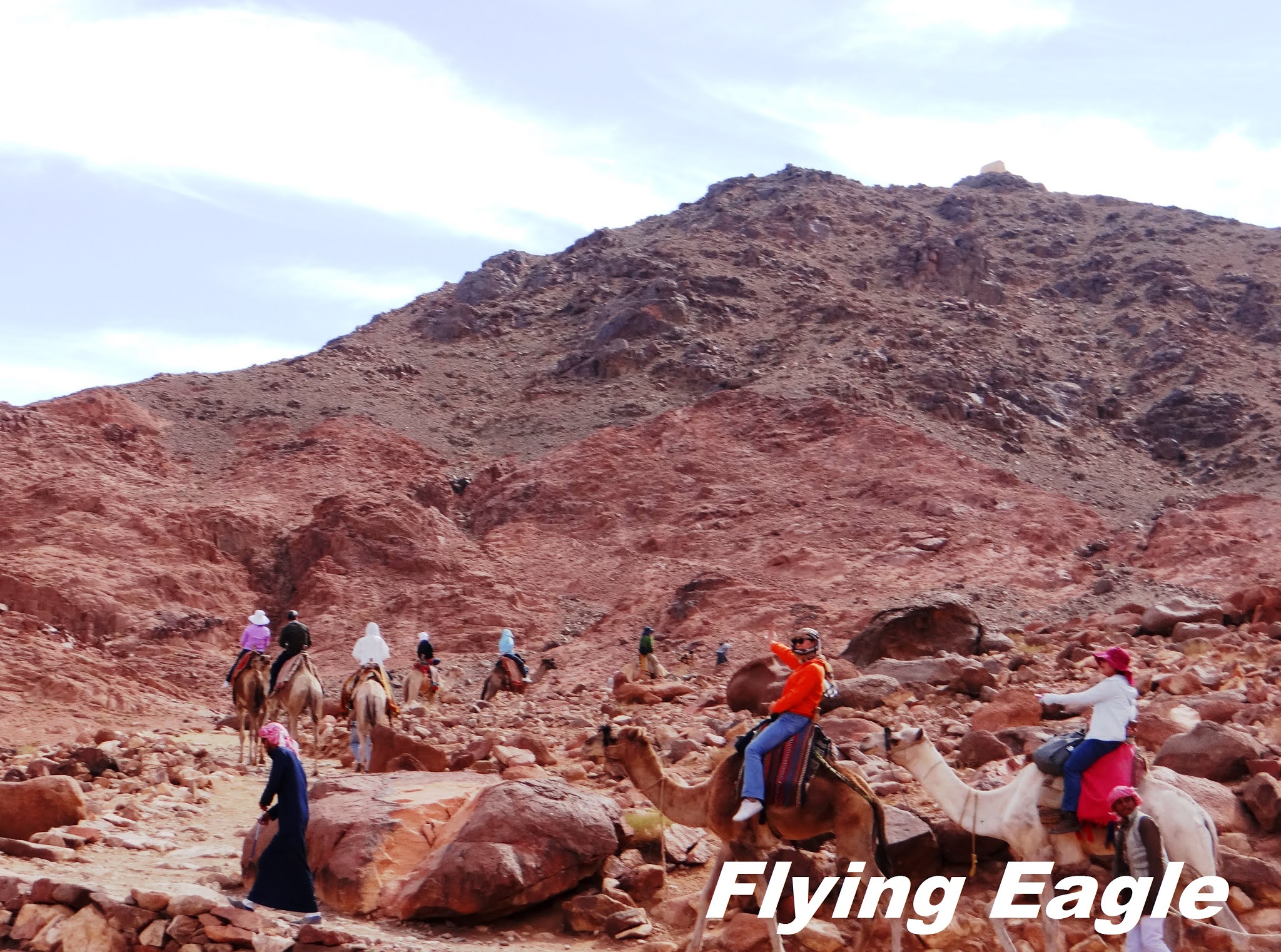 參觀完了位於西乃山腳的聖凱瑟琳修道院,我們要騎駱駝上西乃山。西乃山位於埃及南端的西乃半島,在聖經中有重要的地位。神的使者從荊棘中的火焰中向摩西顯現,便發生在西乃山(出埃及記3:1-10)。出埃及之後,神向摩西頒布十誡作生活和信仰的準則,也在西乃山 (出埃及記19:20-20:17)。西乃半島群山連綿,西乃山高2,285公尺,高度居次,卻最為壯觀。山正對著一個大平原,很可能就是當年數百萬名以色列人出埃及時的安營地。