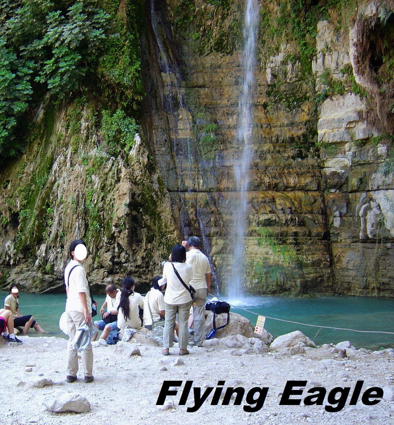 我們2008年初訪聖地時亦到過隱基底,當時在七月的酷暑中走山路,眾人氣喘吁吁。那次上行的終點是更遠的大衛瀑布(David Waterfall),在乾旱疲憊時見到水,大家樂不可支,紛紛脫鞋捲褲,衝入水中享受清涼。舊照也一併與大家分享。