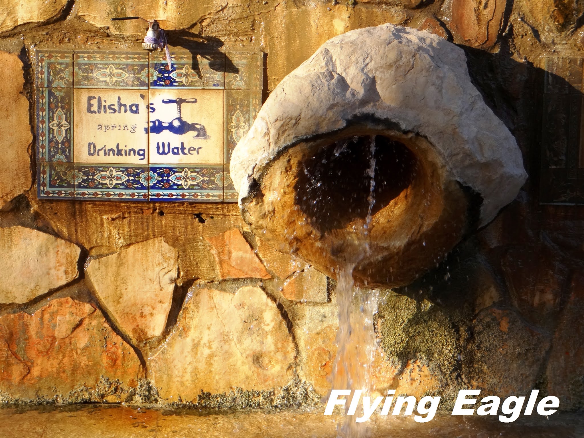 | ▲著名的以利沙泉。 ▲泉水可供飲用。 |