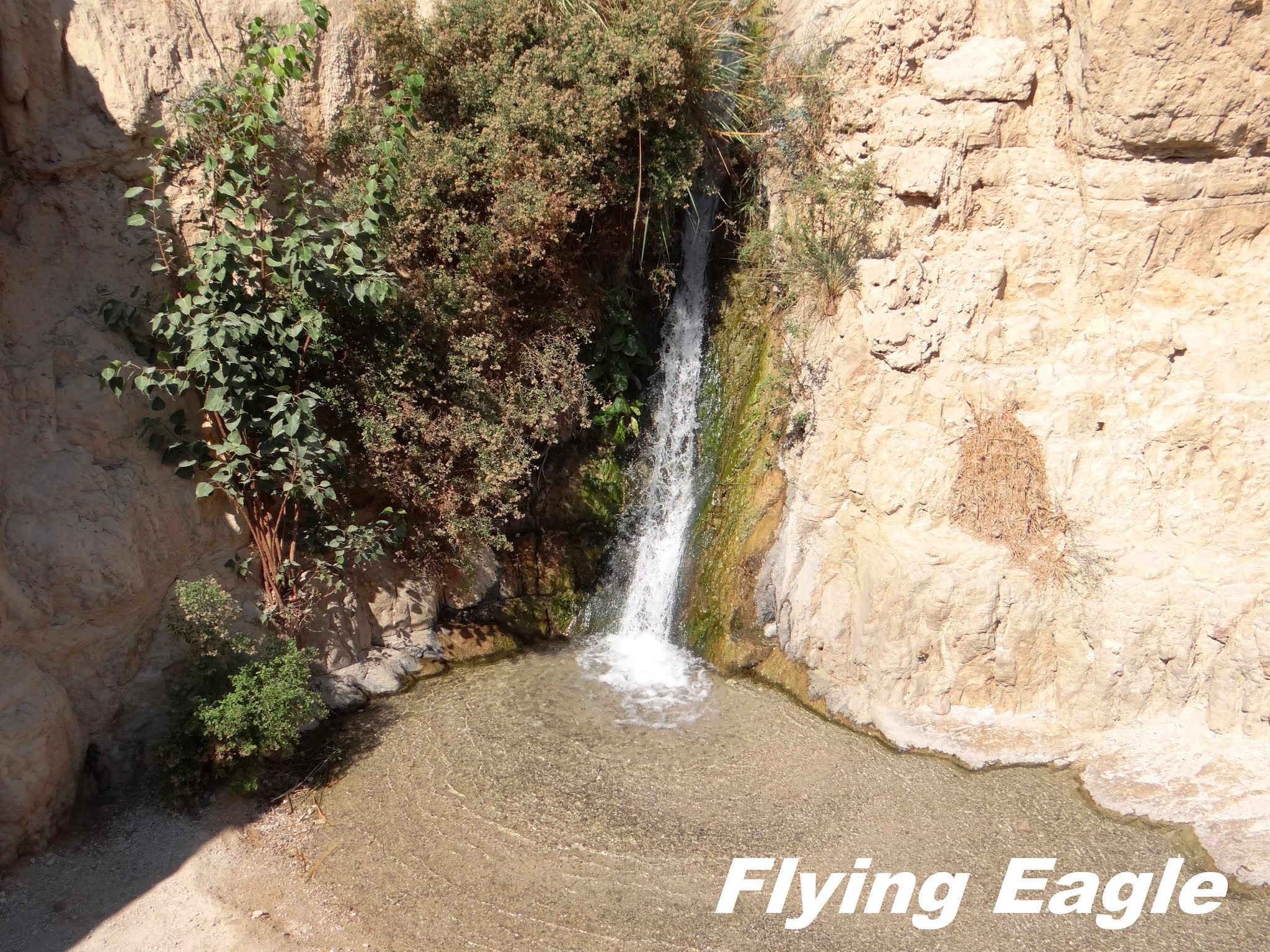 順著保護區的大路走,很快便到下瀑布(Lower Waterfall)。瀑布的水量不大,但水質清澈,有些團友還掬起來喝。沿途山壁上有許多山洞,不禁好奇當年大衛和掃羅是否在此相遇。