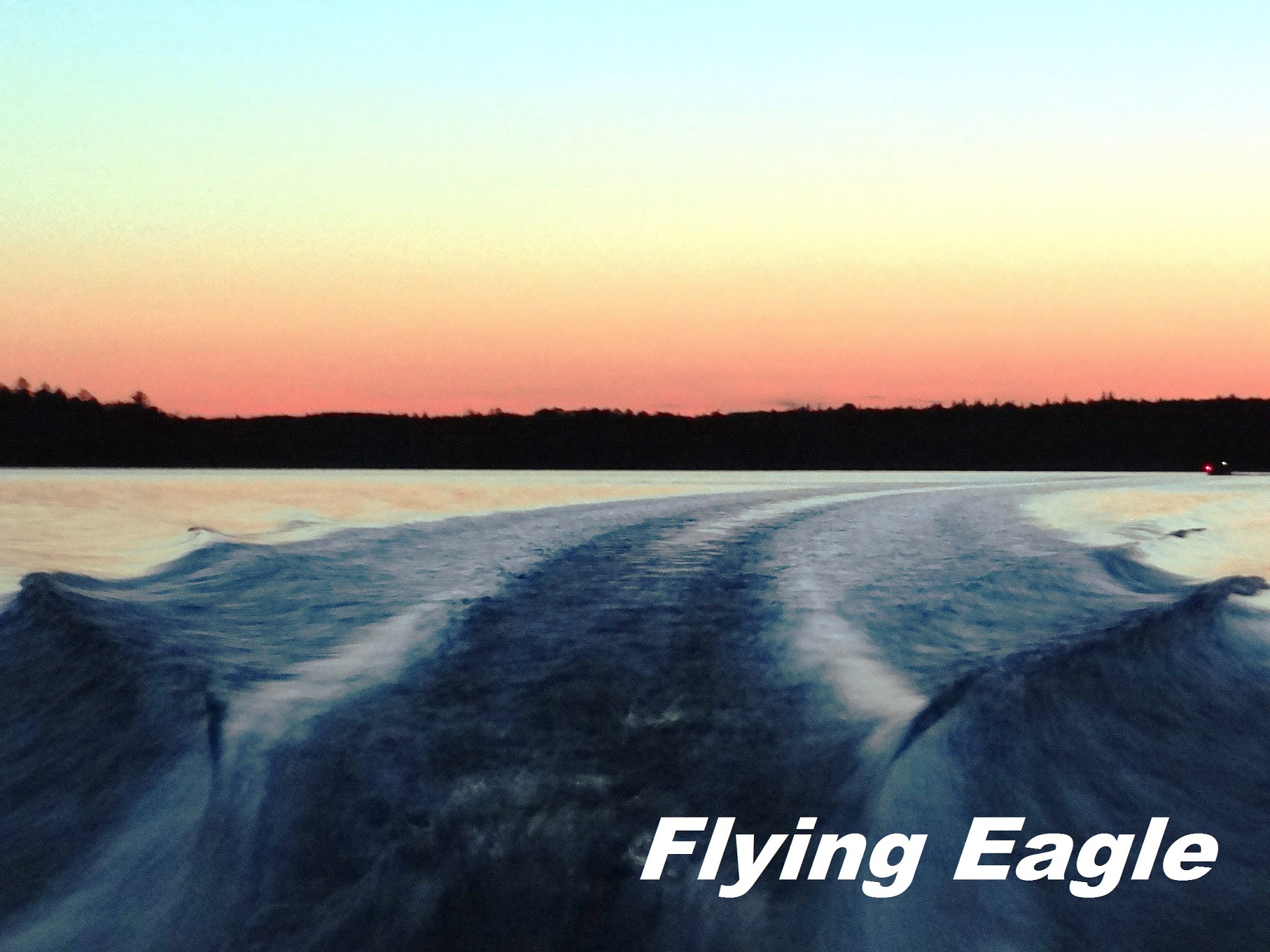 經過半天的等待,我們總算出發了,航程除了包括卡比托格馬湖,還涵蓋納馬肯湖(Namakan Lake)。有人形容這座公園像座水上迷宮,滿佈著相互交錯的水中道路。的確,船艇在島嶼間左右穿梭,若非識途老馬,很容易就迷失方向。導遊也說,航程中其實多次進入加拿大國境。我們途經梣河(Ash River)區域,這裡設有遊客中心,另兩個中心分別位於卡比托格馬湖和多雨湖(Rainy Lake),三個遊客中心相距甚遠。我們一面聽著導遊的講解,一面留心四周的動靜,也捕捉到有趣的畫面。最有意思的是高踞樹頂的老鷹,孤高冷傲,睥睨一切。此外就是回程的夕陽,彷彿在湖面灑出了迤邐的金光,讓人屏息!