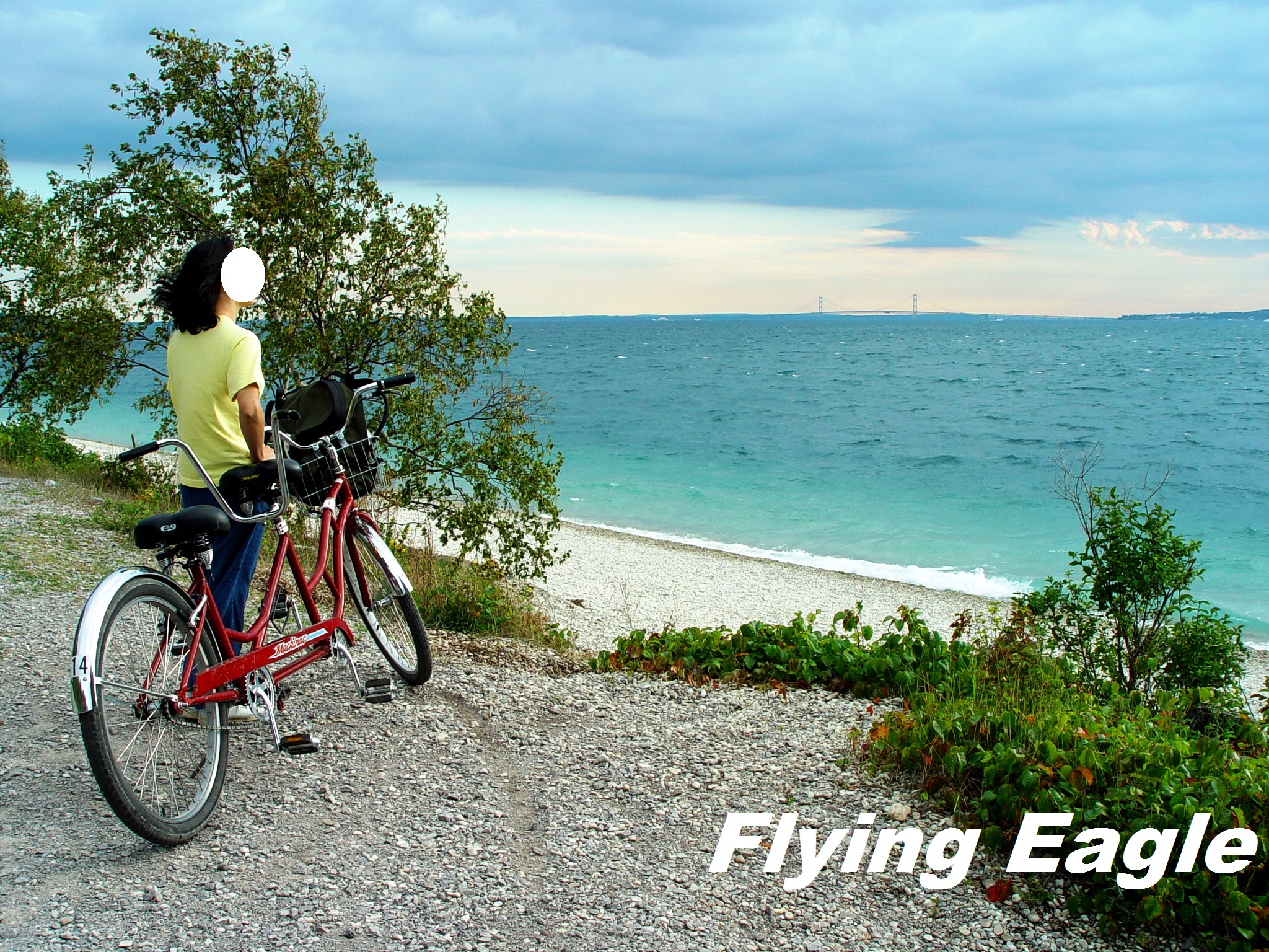 想像著在湖畔邊騎著車單,定是非常的舒暢涼爽吧...
