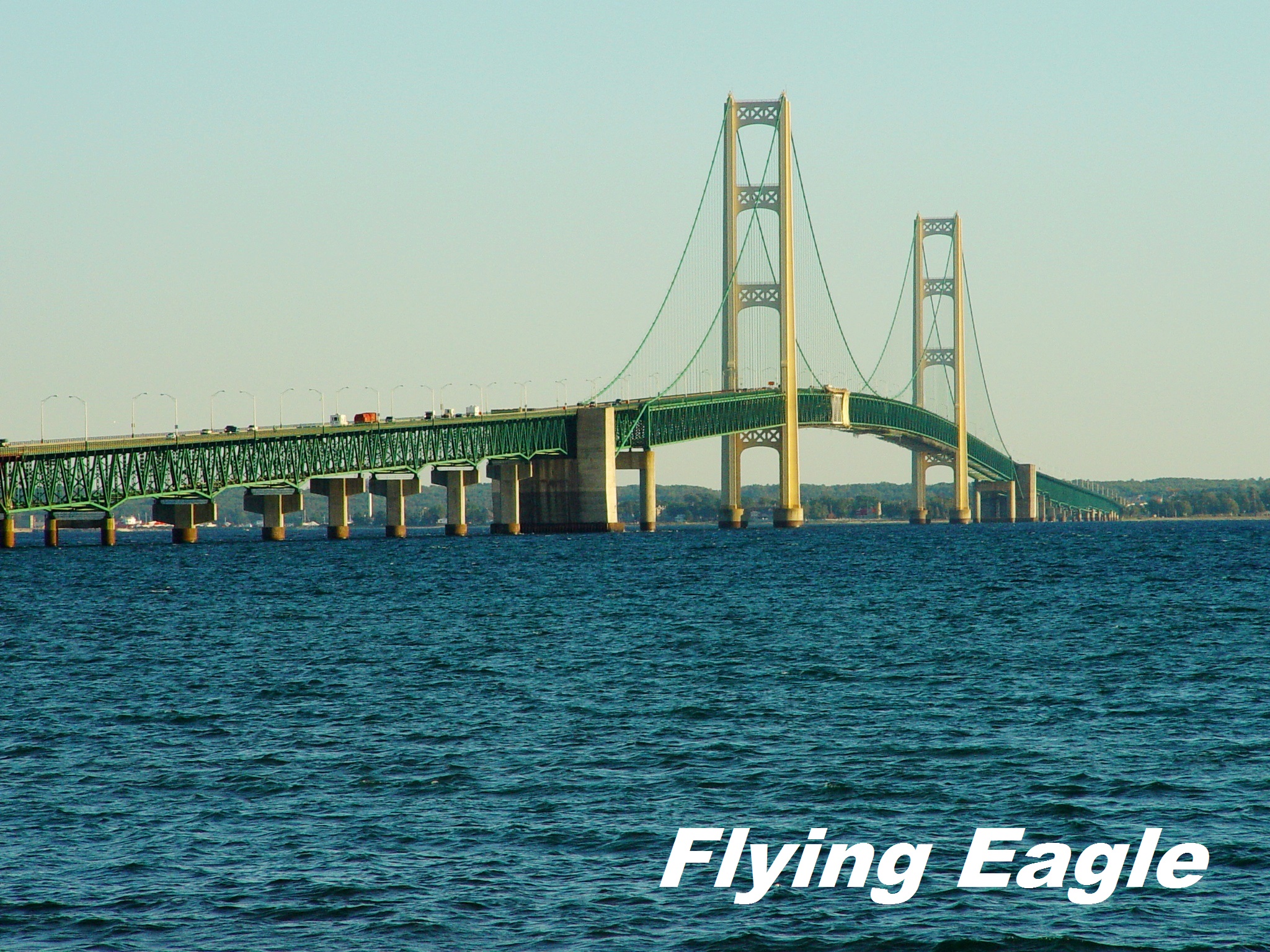 從麥基諾市(Mackinaw City)搭乘前往麥基諾島的渡輪,航程只消約20分鐘。途中最顯著的景觀是麥基諾大橋(Mackinac Bridge),橋長約5哩(8公里),幾乎是舊金山金門大橋的三倍,是西半球最長的懸索橋。在航行時,每艘渡輪船尾都會形成弧形的水幕,被稱為公雞尾巴(rooster tail),是湖上有趣的景象。渡輪很快就靠近麥基諾島,島上著名的格蘭飯店(Grand Hotel)亦映入眼簾。