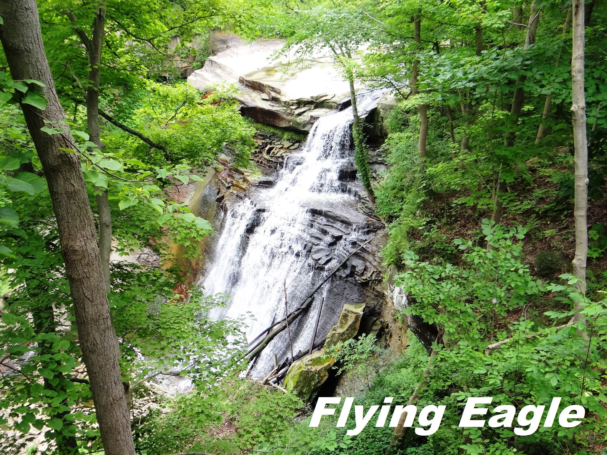 坎道爾湖(Kendall Lake)距岩壁區不遠,是園區最大的湖。這座人工湖花木扶疏、景致美麗,卻又難能可貴的極為幽靜。公園除了湖,還有不少瀑布,據估計在百座左右,而且有些名字十分特別。最著名的白蘭地瀑布(Brandywine Falls)為園區最高,水流從60呎(18公尺)的高處一瀉而下,無論從側面或正面觀賞都頗具氣勢。相較之下,15呎高的藍母雞瀑布(Blue Hen Falls)的涓涓細流就顯得十分秀氣了。由藍母雞瀑布順流而下就到了酪乳瀑布(Buttermilk Falls),又是一個令人印象深刻的名字。這個瀑布位於僻靜的一角,水流沿著層層山壁緩緩而下,很有特色。前往這個瀑布的路不太好走,而且標示不清。回程我們本欲循原路,但雨後原本已不清晰的小徑更難辨認,繞了幾圈均無功而返。正當心焦之際,一位大男孩帶著女友出現了,他是當地居民,對這一帶瞭如指掌。感謝主及時的幫助,讓這位男孩救我們脫困,也為我們此行留下難忘的記憶。