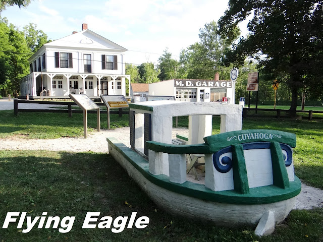 我們抵達公園後,逕赴縴道步道。路的一邊是庫雅荷加河,沿途有樹木和野花相伴,賞心悅目,步道上有人散步、慢跑和騎單車。我們安步當車走了大半個鐘頭,然後在波士頓商店遊客中心(Boston Store Visitor Center)附近佇足。這一區可說是緬懷歷史區,除了遊客中心是1836年的老建築,旁邊的修車店M. D. Garage也頗具歷史,門前的船隻模型更讓人追想運河的往昔。其實園區共有61個建物或地區名列國家史蹟名錄(National Register of Historic Places),而公園本身更是國家歷史地標(National Historic Landmark)。
