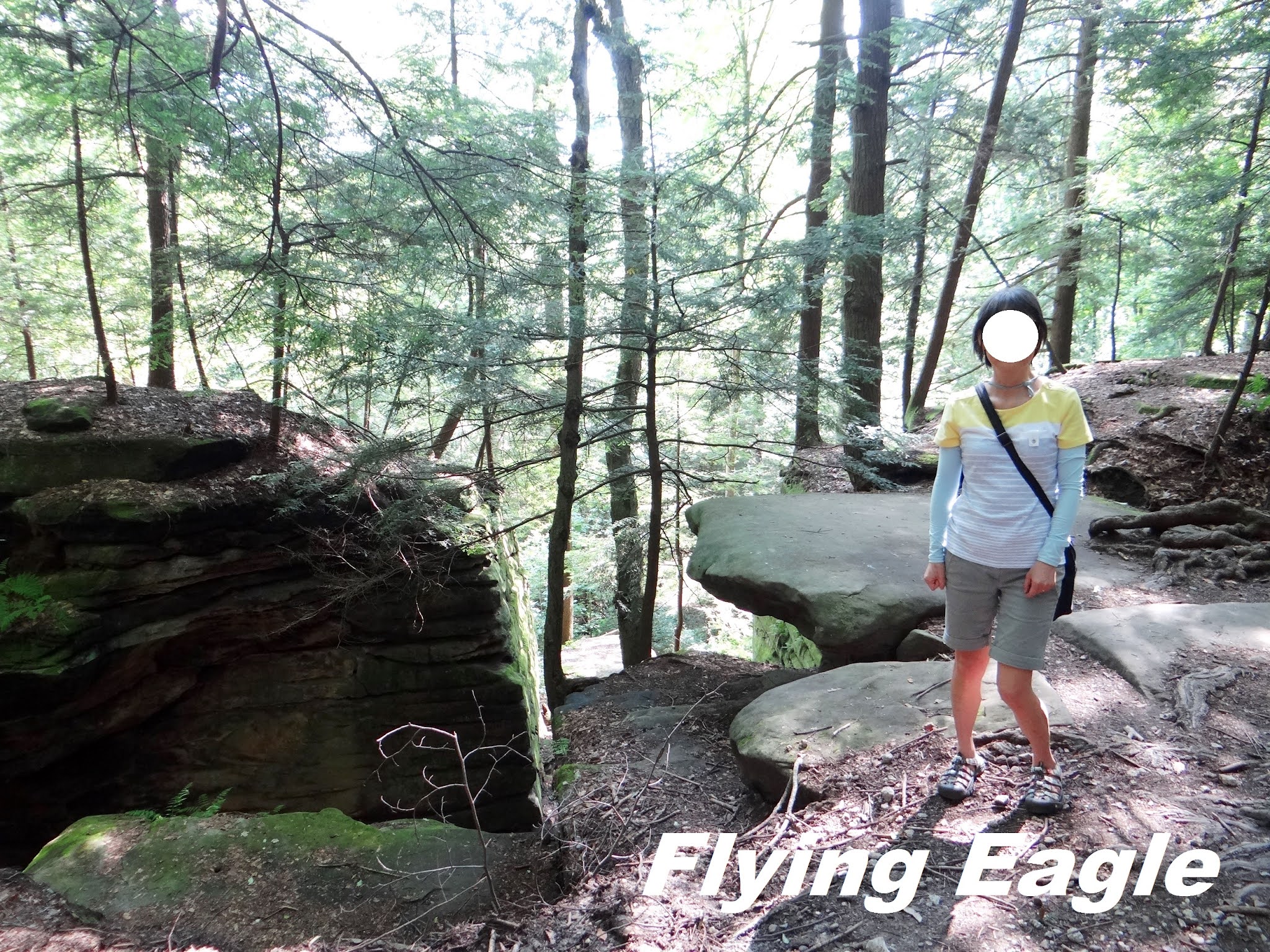 翌日我們前往里奇岩壁區(Ritchie Ledges),這塊地從前屬於名為里奇的農夫,因而得名。據說這裡的岩壁見證了三億多年岩層、河流和氣候的變遷,才形成今日的風貌。後來這附近的地被坎道爾(Hayward Kendall)買下,他的遺願是把地捐作公園之用,以紀念其母維吉尼亞。所以來到這裡欣賞美景之餘,藉著地名也對歷史有所認識。岩壁步道(Virginia Kendall Ledges Trail)是岩壁區主要的路,全長2.2哩(3.5公里),路徑高低起伏,但不難走。沿途有各式各樣的沙岩。有的層層疊疊有如千層糕;有的裂成兩半,裂縫極小、切面極平整,就像刀切豆腐一樣;有的岩壁上摻雜了其他質地的石子,彷彿鑲了珍珠。岩壁眺望點(Ledges Overlook)是觀日落的好地方,可惜我們無暇久候,不能一睹美麗的夕陽。步道上往往可見的是,堅硬的岩壁上竟生出鬱鬱蔥蔥的綠色植物,這些植物的根都非常幼細,纏繞於石堆之中,其堅毅的生命力讓人咋舌。