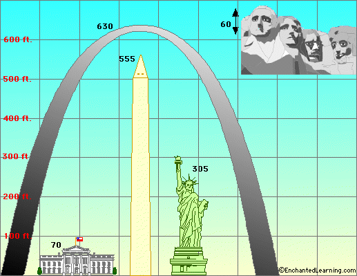 聖路易拱門國家公園座落於密蘇里州聖路易市區,又名大拱門,被譽為是通往美國西部的大門。這座高達630呎(192公尺)的建築有幾項傲人之最──它是世界上最高的拱形建築,也是西半球最高的紀念碑。和美國其他著名的地標相較,它是自由女神像(高305呎)的兩倍有餘;也比555呎高的華盛頓紀念碑(Washington Monument),高出一大截。