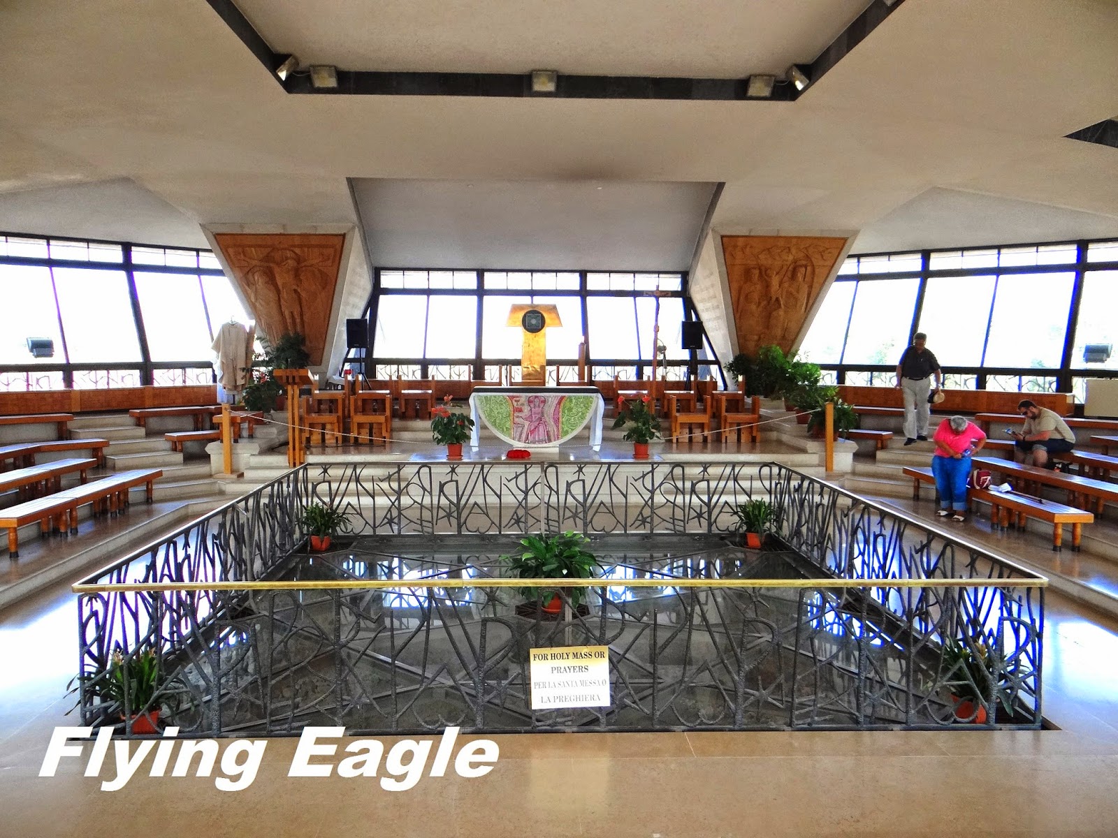 除了猶太會堂的遺跡之外,這裡有棟建築物同樣很引人注目。這座8角形的教堂重建於原本第5世紀的教堂遺跡之上,原址曾經是彼得的家。進了教堂覺得採光很好,由於位置較高,可以看到很遠以外的景色。教堂中間圍起了一個區塊,因為他們蓋新教堂時特意保留了從前建築物的遺跡,讓人從這裡的透明玻璃可以俯觀。