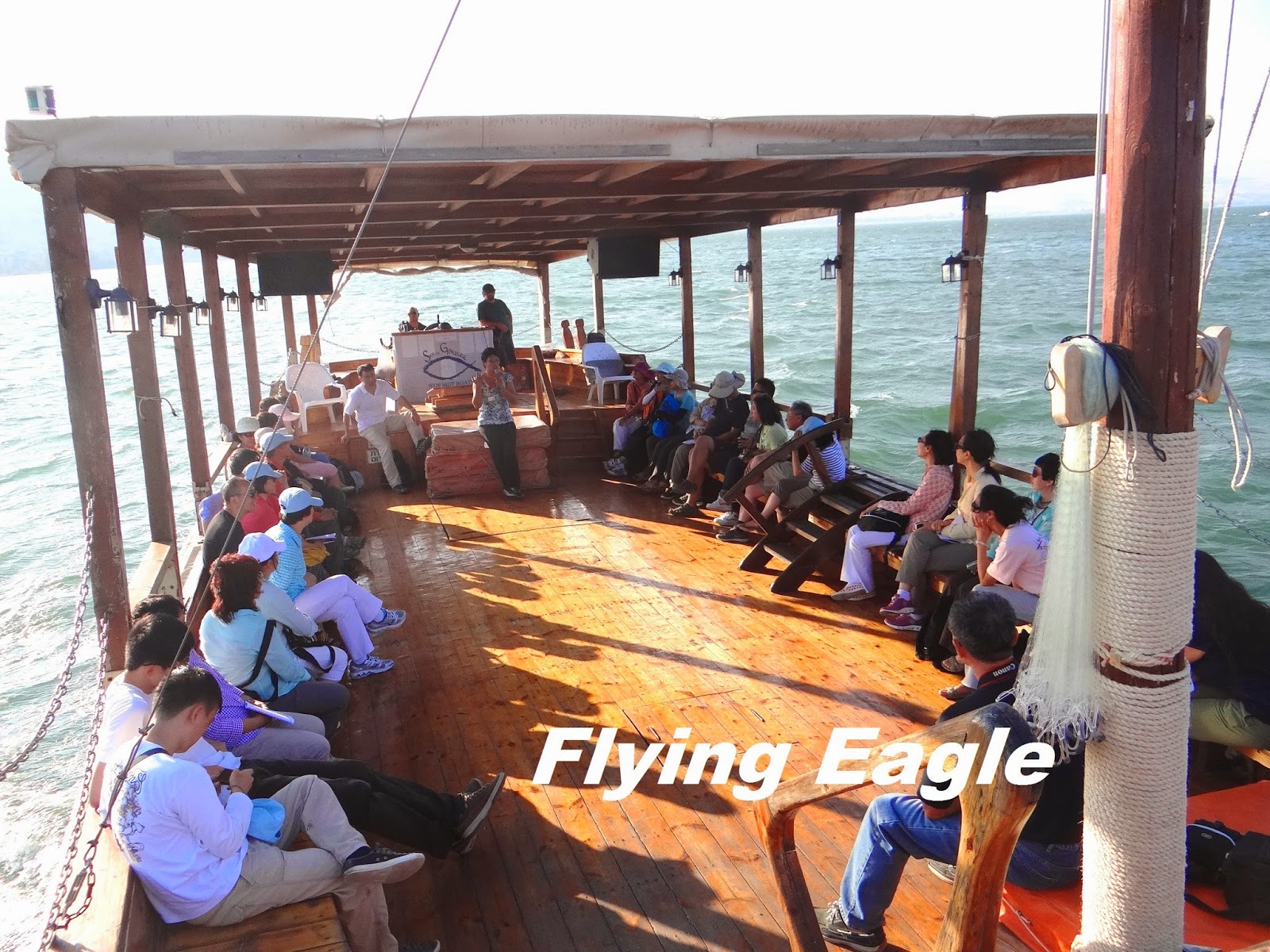 隨著船緩緩駛離,岸邊景物也逐漸變小。我們停在水中央,水面一樣平靜無波。當年彼得等人曾在這裡打漁,他們也曾經因看到主耶穌在海面行走而害怕,還因風浪大作而向主呼求。我們能夠在不同的時代,來到主耶穌和門徒生活、服事的地點,追想他們談話時的語氣和表情,實在是很特別的經歷!