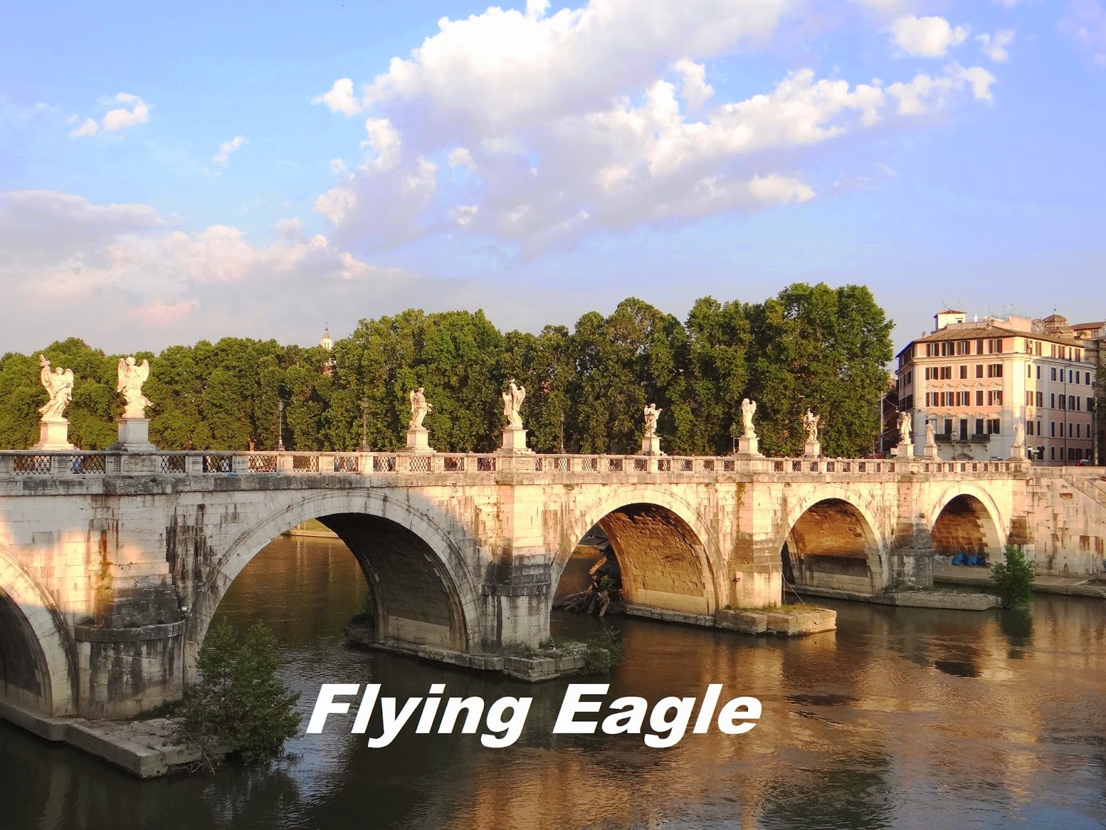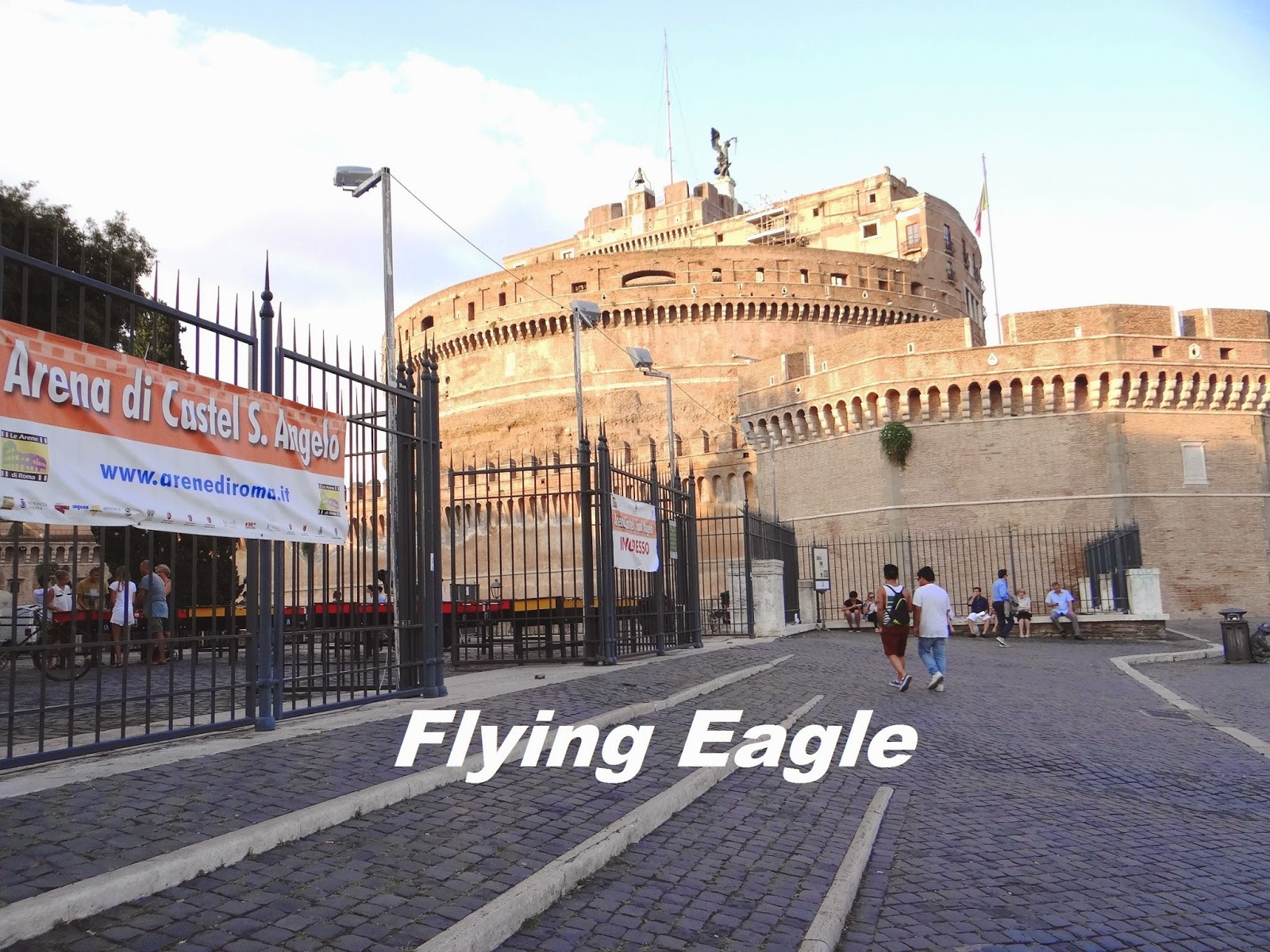 吃過晚餐,有人提議趁著天色還亮,再出去逛逛。黃昏時分的聖天使橋、聖天使堡和梵蒂岡,真是美不勝收。因為這些景點翌日會再去,將在下篇詳細記錄。有趣的是,在聖天使橋的一端有小販賣仿冒的名牌包,彷彿回到了亞洲的菜市場一樣。