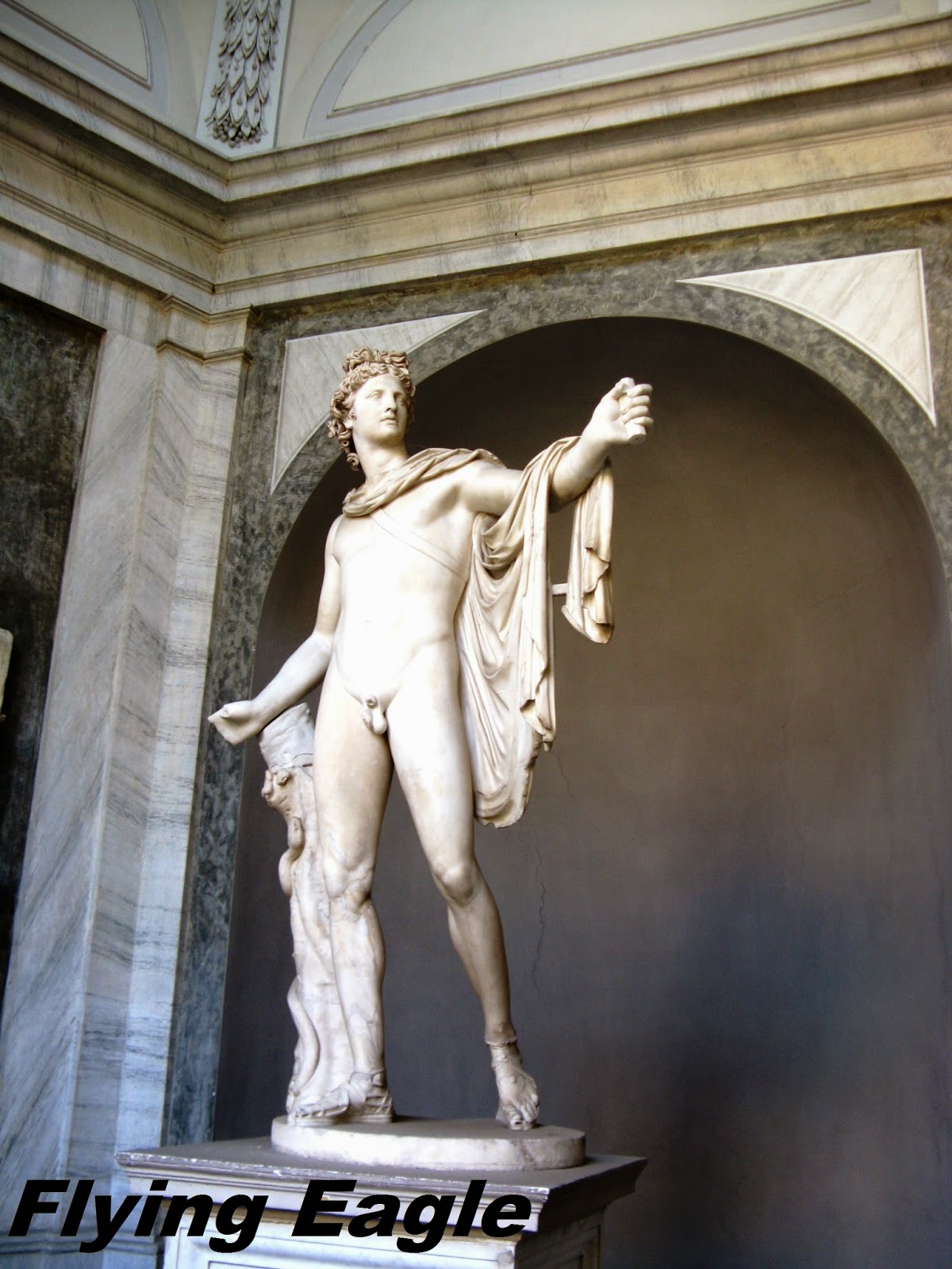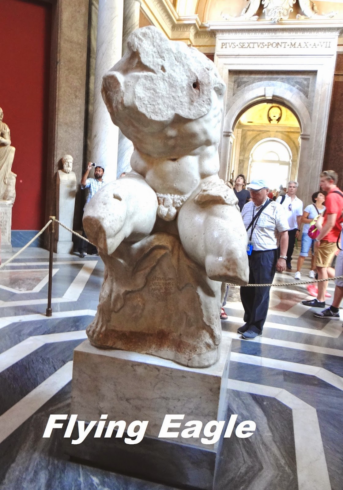 進了博物館,覺得梵蒂岡畢竟身處羅馬,許多藝術品都有希臘羅馬神話的色彩。我們看到太陽神阿波羅的雕塑,還有拉歐孔和其兩子被蛇纏繞而死的群雕。特洛伊的祭司拉歐孔因為指出送進城來的木馬是詭計,而殃及兩個兒子。他們三人被阿波羅派出的毒蛇纏繞而死。