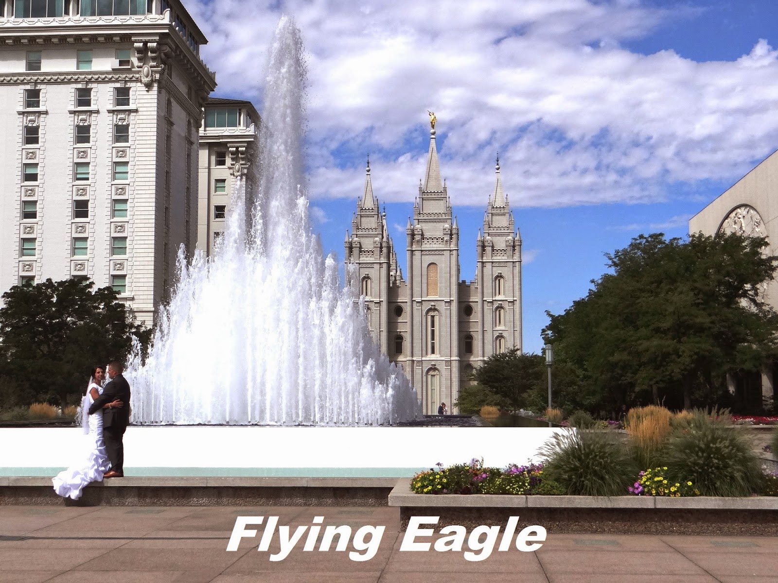 鹽湖城是由摩門教領袖楊百翰等人在19世紀中葉建立的,因位置距離大鹽湖很近而得名。既來到此地,當然少不得在市區轉轉,一個必訪的景點是摩門教的聖殿廣場(Temple Square)。聖殿廣場位於市中心,楊百翰在初抵鹽湖城時便選定地點並親自主持破土典禮。廣場佔地10畝,目標甚為明顯,所以很容易找。聖殿廣場有著完善的規畫,花草樹木噴水池一應俱全,本就景色宜人,再加上這天天氣很好,照出來的相片效果不錯。