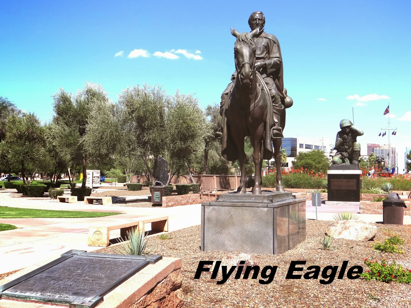 在這裡還有耶穌會修士Eusebio Francisco Kino的銅像。此人來自義大利,他走訪了亞利桑那州的許多窮鄉僻壤,把歐洲的花果穀物帶進來,教導原住民種植和畜牧,對該州的農牧業影響深遠。Navajo Code Talker也是我壓根沒聽過的詞,原來在二戰時期,美國海軍陸戰隊的Navajo部落青年發展出一套Navajo密碼,拯救了無數性命並使戰爭早日結束。這種密碼是現代軍事史上惟一無法破解的,為表彰這些Navajo部落青年的貢獻,特立碑以紀念。