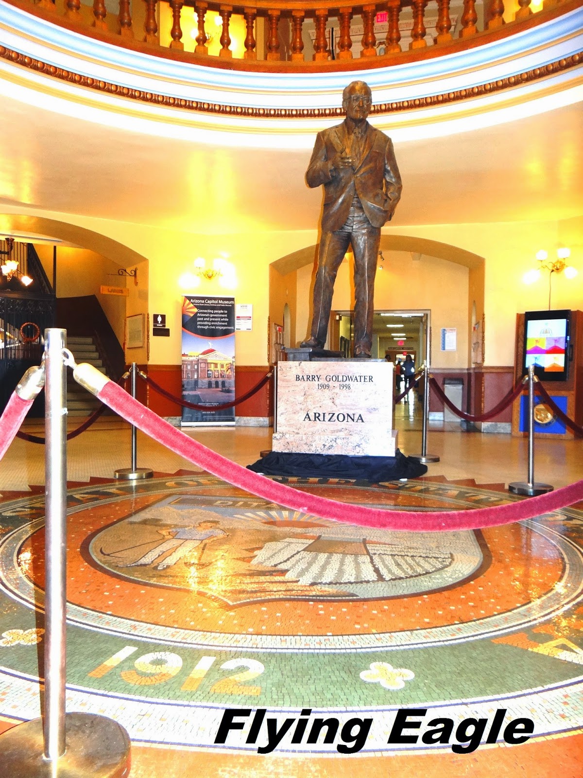 進入州府大樓,馬上就看到一尊巨大的銅像,這是該州資深政治人物Barry Goldwater,他曾任5屆國會參議員,算算竟長達30年!在銅像腳下是亞利桑那州的州徽。