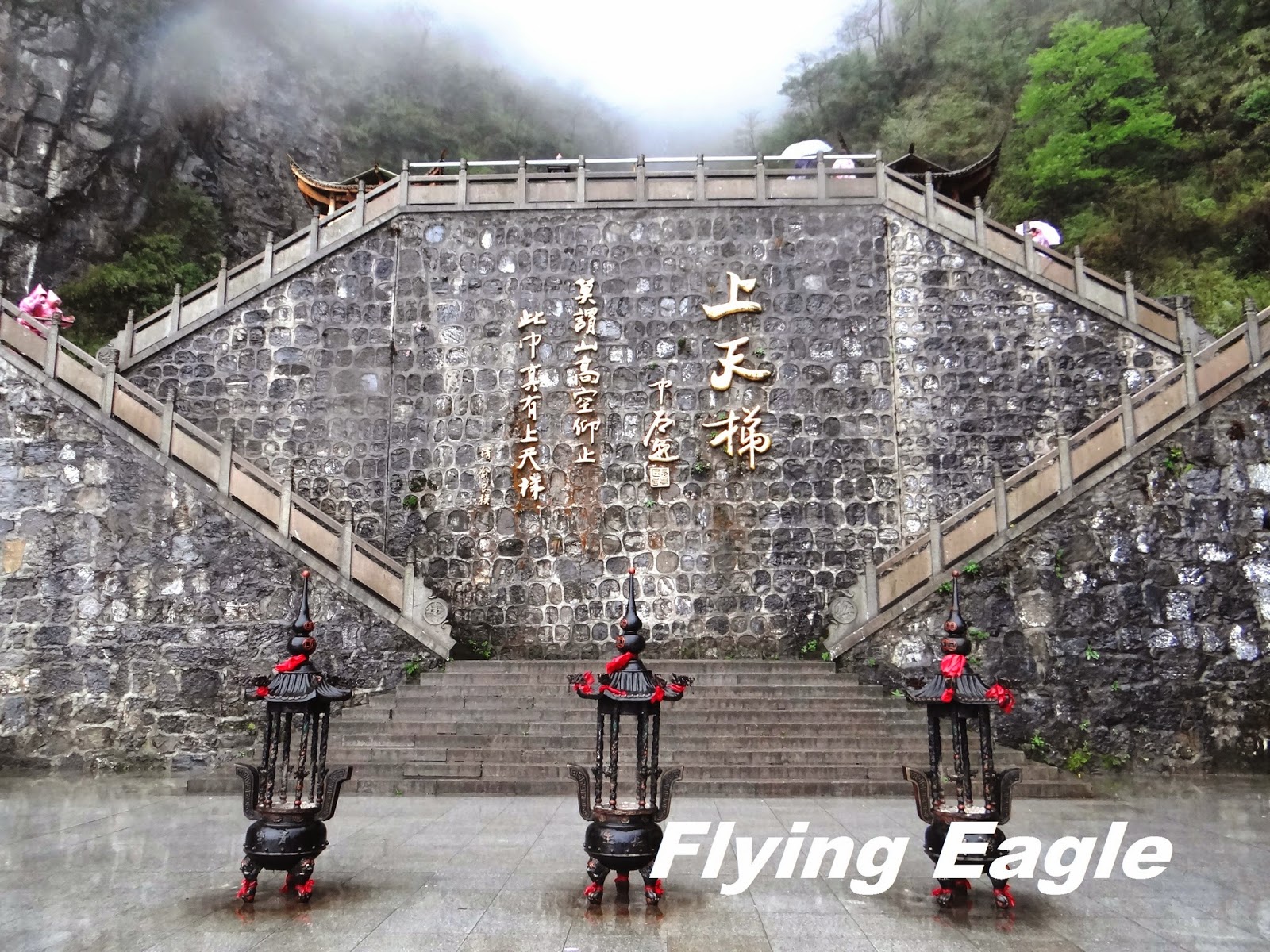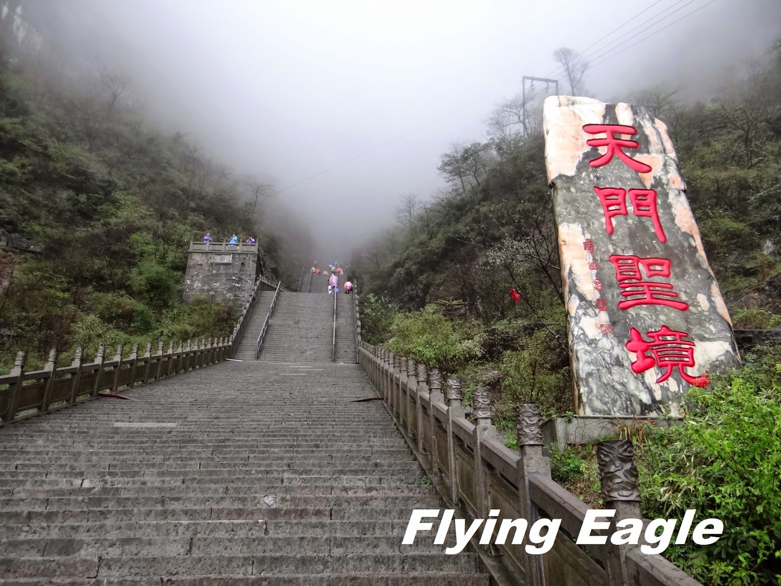 最後來到天門洞的天梯前,天氣好時本可看到層層的階梯最上端有著一個大洞,即天門洞。這個洞是全球海拔最高的天然穿山溶洞,許多不同的冒險舉動在此上演過,包括飛機穿越、單人飛越以及徒手攀爬等。據說現在已經不許飛機在此穿越,畢竟個人安危事小,破壞了自然景觀可沒人賠得起!