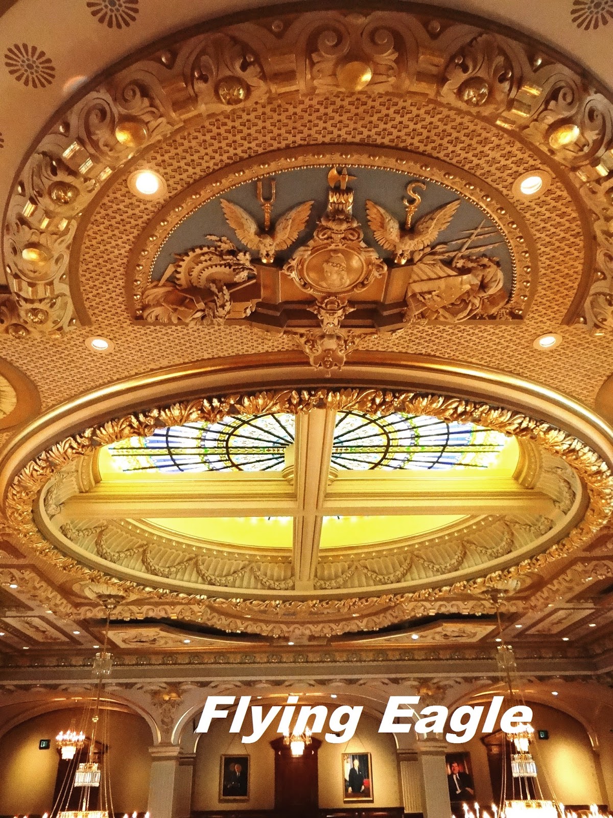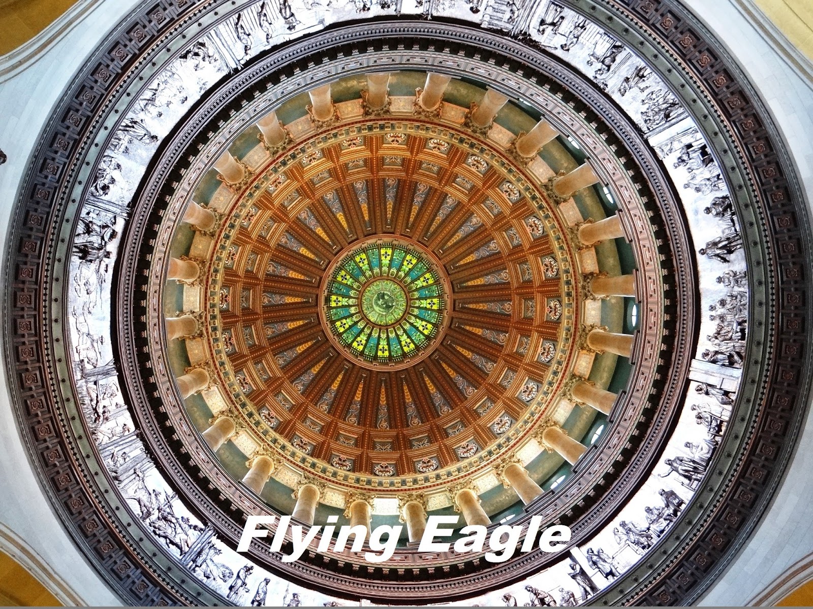 ▲圓頂最高處用彩色玻璃拼出州徽。