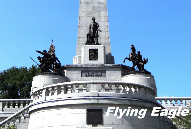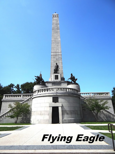 林肯的墓佔地廣闊,四周有大片的綠地。走近墓地便看到林肯的頭部雕像,鼻子的部分被人摸得特別閃亮,因為有些人認為摸他的鼻子可帶來好運。墓的正中央是高聳的方尖碑,方尖碑的下方也就是墓室入口的上方,立著林肯的銅像。林肯左手中握有解放黑奴宣言,銅像下的老鷹嘴裡銜著斷開的鐵鍊,象徵人類掙脫奴隸制度。雕像旁的四個角落各有一尊塑像,代表著南北戰爭時候由林肯指揮的步兵、騎兵、砲兵和海軍等主力部隊。