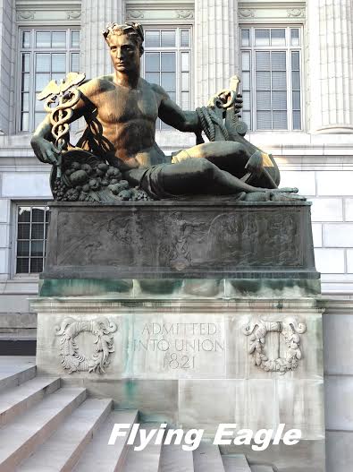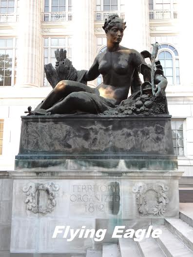 在州府兩旁有兩尊銅像,一女一男,一左一右,分別代表了流經密蘇里州最大的河川。左邊的女子雕像代表密蘇里河,女子手上和身邊有很多農作物和漁獲。右邊的男子雕像則代表密西西比河,手持象徵著醫藥界的杖和航海業的錨。這兩尊銅像很羅馬,讓人宛如置身義大利。