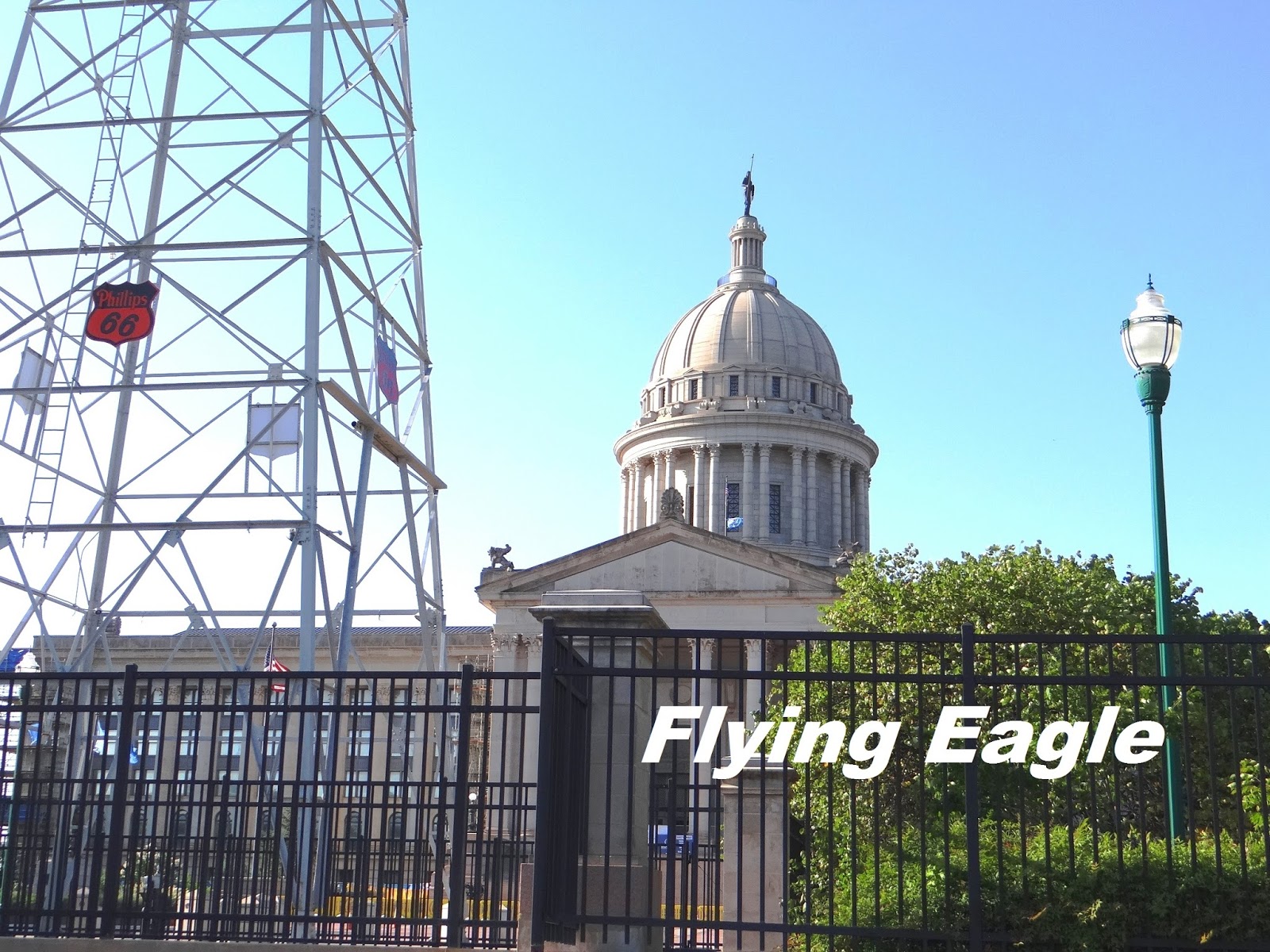「奧克拉荷馬」這麼長的名字來自印第安部落的語言,意即「紅人」,該州的印第安原住民人數,在全美各州是數一數二的,而州府的設計也反映了這一特點。奧克拉荷馬市身兼首府和第一大城市,和台北和台南都締結成為姊妹市。車子駛近州府範圍就看到很多工業的機具器械,和我們以往到訪的州府風格大相逕庭,讓人懷疑自己是否跑錯地方。原來奧克拉荷馬州除了出產農作物,更是美國主要的石油和天然氣產地。這州府大樓就直接建在油田之上,而奧克拉荷馬州府也是全美唯一有鑽油架的州府,且這些設備都仍在使用中。所以我們放眼看到的,並非歷史陳跡或裝置藝術,而是如假包換的鑽油設備。