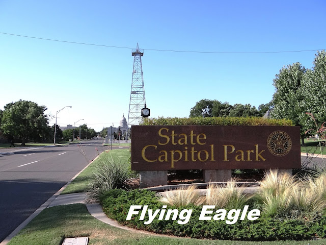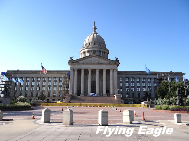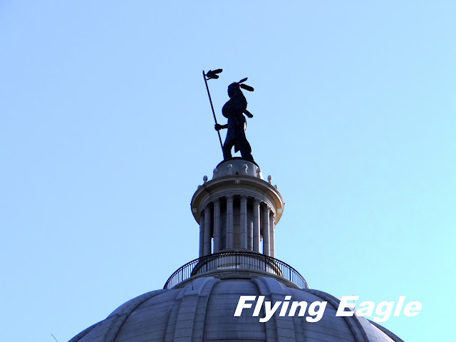 美國有好幾個州擁有為數不少的印第安人,但很少看到像奧克拉荷馬州如此重視,成為州府的一大特色。州府頂上那雕像還有名字的,叫做護衛者(The Guardian)。州府前那尊碩大的銅像也很有特色,據說出自名家之手,整個雕像沒有太多細節,予人厚實穩重的感受。