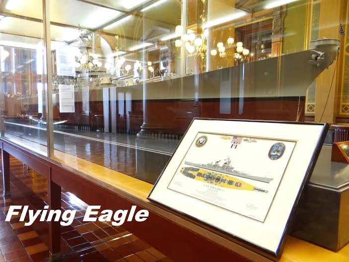 進了州府一樓的大廳,就看到愛荷華號戰艦的模型。愛荷華號是美國第一艘遠洋戰艦,也是第一艘以州命名的船艦。愛荷華人顯然很以這艘戰艦自豪,還在州府另闢一區展示愛荷華號的模型和輝煌歷史。