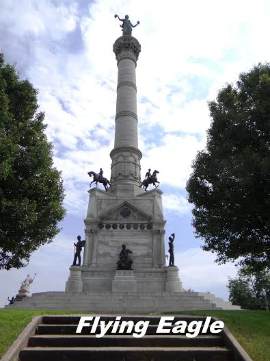 愛荷華州府的側面,有一座高聳的海陸官兵紀念碑(Soldiers and Sailors Monument),紀念南北戰爭中的8萬名愛荷華州士兵。紀念碑的頂端是勝利女神,中段4位騎著馬的是南北戰爭中出身愛荷華州的4位將軍。底部則是4個軍種: 步兵、騎兵、砲兵和海軍。這座紀念碑為愛荷華州府豐富的戰爭元素再添一筆。我們臨走前,再多拍幾張州府金圓頂和綠圓頂的特寫,仔細比較後,發現兩者實在大同小異,沒有太大差別。