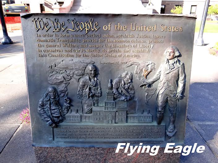 ▲州府前的銅碑刻有獨立宣言的一段話。