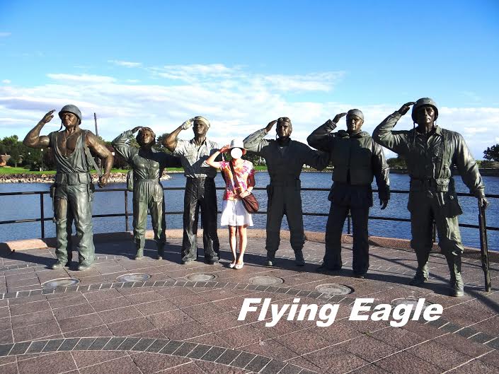▲二次大戰戰士紀念雕像背對州府湖而立。