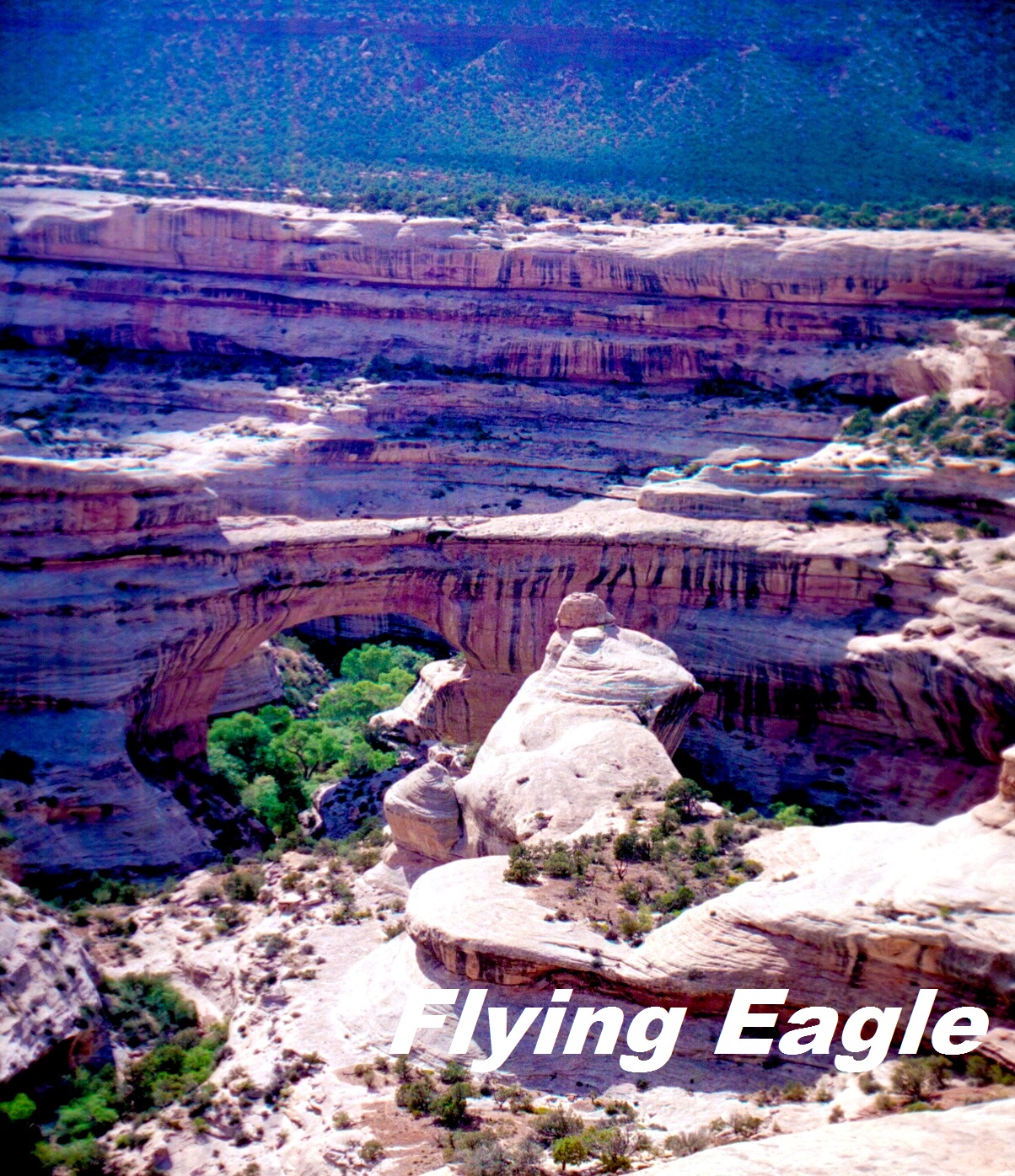 這個紀念區裡有3座天然橋,分別是Owachomo,Kachina和Sipapu。從遠處看來Owachomo似乎最為壯觀,但事實上Sipapu是三者中最長的,長度為225呎,排名世界第7。橋和拱門在一般人眼中形狀相仿,但專家卻將兩者視為不同的類別。值得一提的是,紀念區被公認是全美最無光害的地區之一。