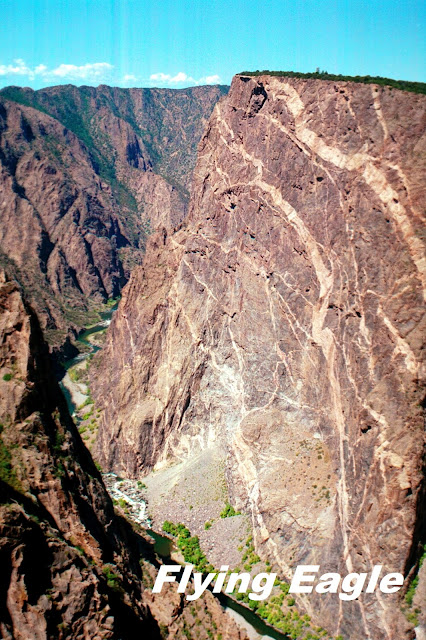 公園裡最出名的景點當推手繪牆(Painted Wall) ,從山壁頂端到峽谷底高2千餘呎,是科羅拉多州最高的峭壁。山壁上有一條條明顯的淺色紋路,好像被人用刀子刻出來的一樣,非常奇特。園中有許多條步道,我們選了一條難易適中的Warner Point 自然步道,來回1.5哩,約1小時可以走完。這條步道行經杜松(Juniper)森林,沿途可看到不同的地貌和植物生態。我們在步道上還遇到一條不算小的花紋蛇,狹路相逢,彼此互不侵犯便分道揚鑣。