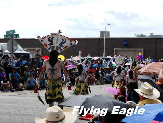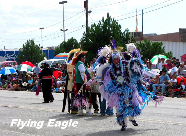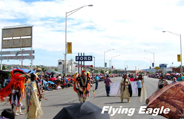 這一天適逢蓋洛普市(Gallup)舉行第90屆的印第安部族典禮(Inter-Tribal Indian Ceremonial),所以我們到這2個國家紀念區之前,先去了蓋洛普市。歷史悠久的66號公路市中心路段封街舉行慶祝儀式,大馬路的兩旁擠滿了人,一位難求。不同部落的人拿著旗幟輪流出場,在這種場合當然少不了印第安的傳統服飾了,不過除此之外我們也捕捉到了一些有趣的畫面。