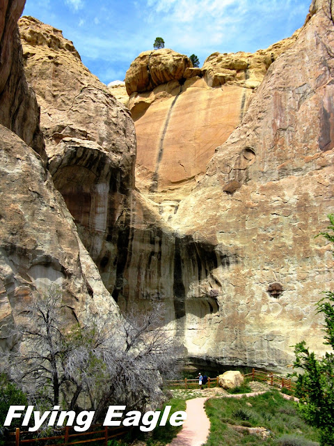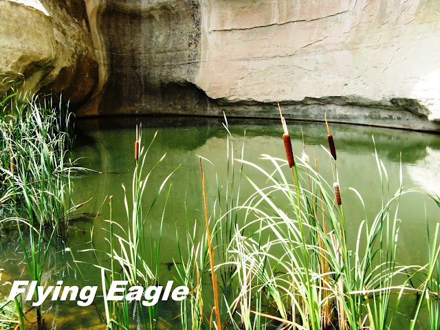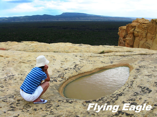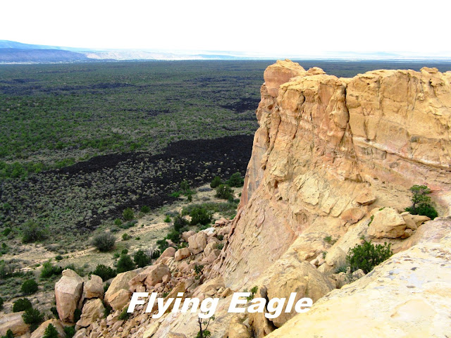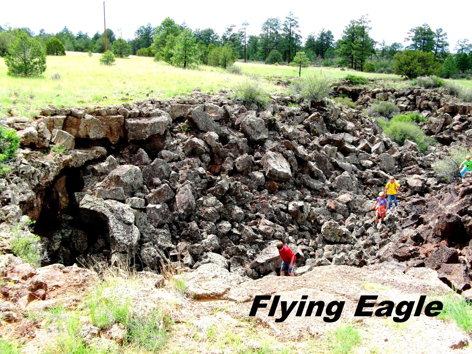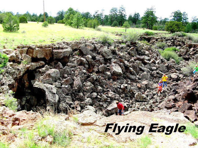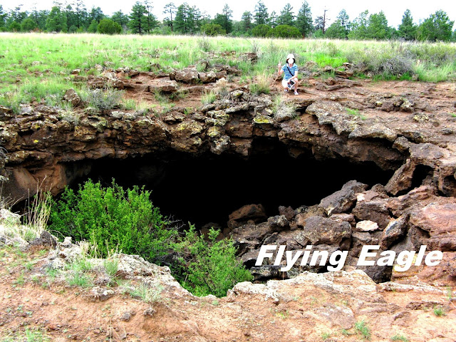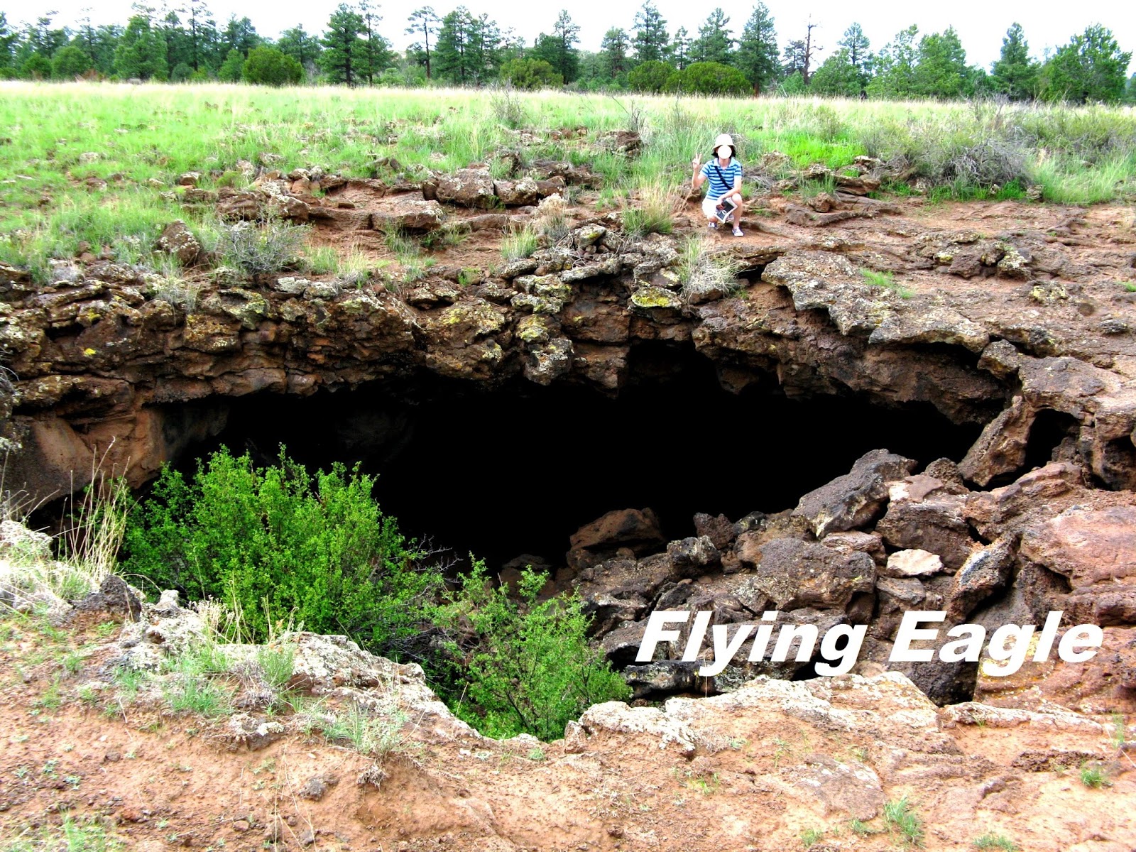 園區有一些火山熔岩洞穴,想進入洞穴需在遊客中心先申請許可證。2010-13年所有洞穴都禁止入內參觀,因為要避免洞內的蝙蝠感染當時的流行病。我們不巧就是在此時到訪,所以只能望著洞口興嘆!園區另一個值得一去的是砂岩峭壁眺望點(Sandstone Bluffs Overlook),在此可以居高臨下俯視大片的火山熔岩和外圍的砂岩山壁。我們也看到砂岩峭壁頂端的壺洞(pothole)之中有水,竟有蝌蚪在水中游來游去!實在很好奇這些蝌蚪怎麼來的!