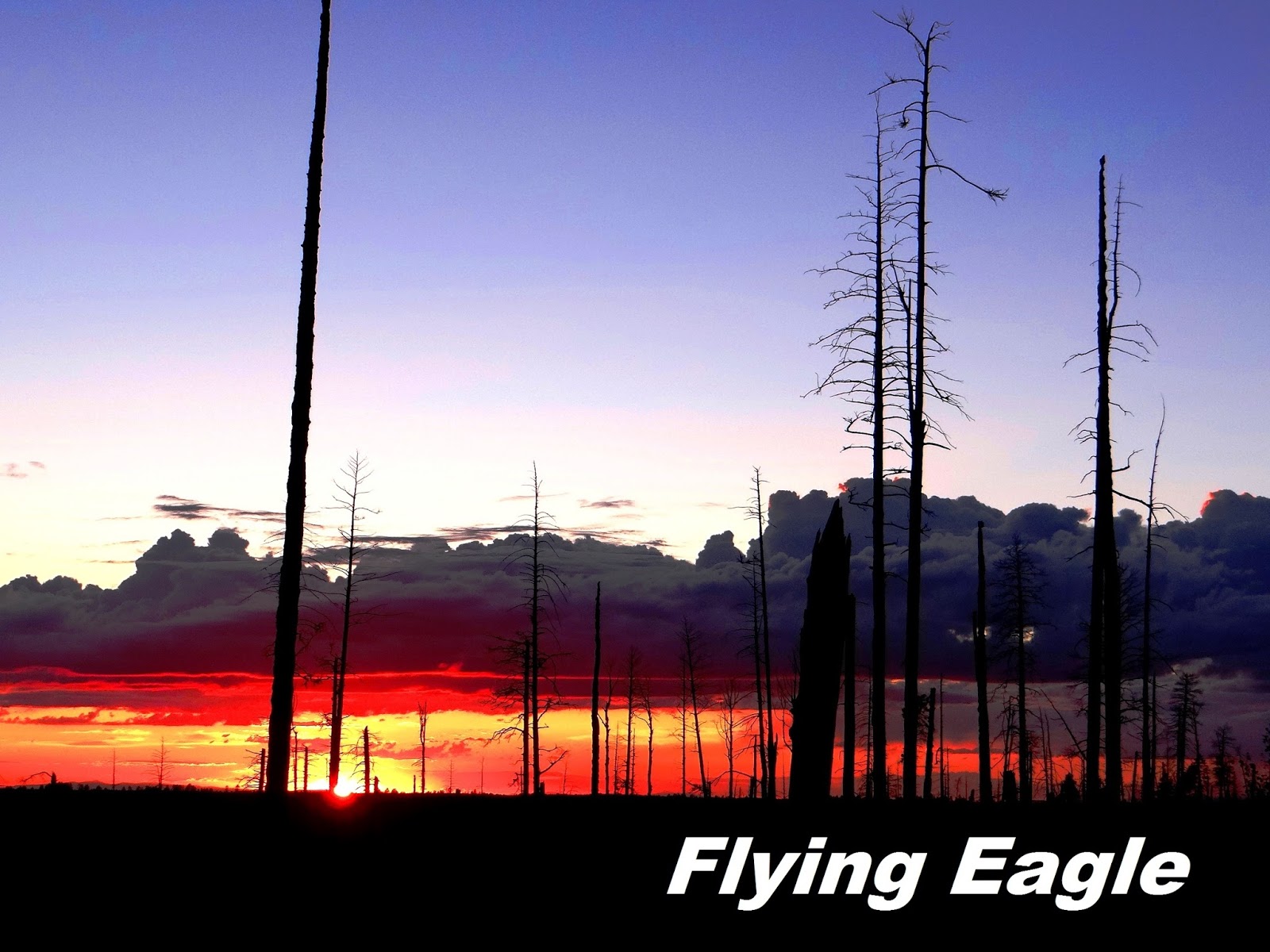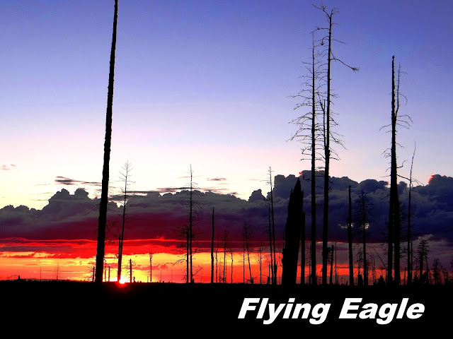我們在傍晚時分離去時,沿途的大片草地有許多鹿兒出來覓食,可惜我們未能多作停留。離開公園範圍約20哩,夕陽餘暉灑落在浴火之後仍然挺立的枯樹上,晚霞上還有層層疊疊的白雲,這景象實在讓人驚豔!悠遊的鹿兒再加上落日美景,為我們此行譜上絕妙的休止符。