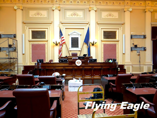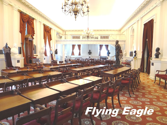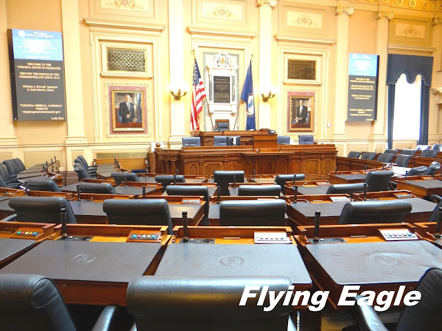 華盛頓雕像前後的房間,是舊的參眾議會所在,房間雖歷史悠久,但保存完好。維州的議會於17世紀初期即已建立,據說是西半球最古老的立法機構。舊的參議會牆上掛著一幅幅以歷史事件為主題的油畫。另有一間傑弗遜室,陳列著當初傑弗遜設計州府的原始模型。目前使用的參眾議會也位於同一層樓,設備當然比舊議會先進很多。