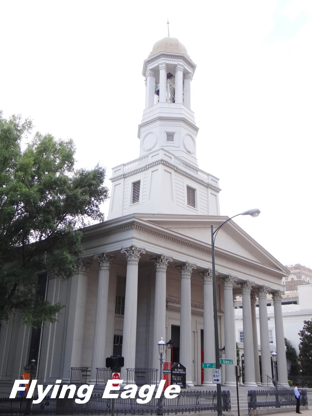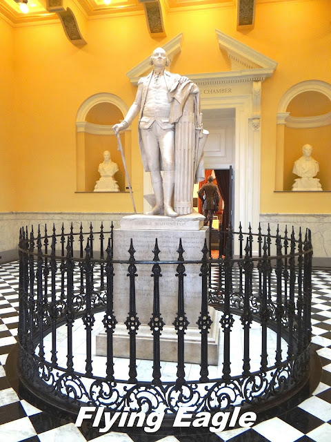 參訪完州府內部,我們回到州府廣場,這裡有不少的雕像和紀念碑。最引人注目的當推華盛頓騎馬英姿紀念碑(Washington Equestrian Monument),這碑是為紀念華盛頓和維州對美國獨立的貢獻而設。除了居中的華盛頓雕像,另有6尊較小的雕像環繞,其中有傑弗遜和說出「不自由毋寧死」名言的派翠克‧亨利(Patrick Henry)。和州府隔街相望的是聖保羅聖公會(St. Paul’s Episcopal Church),很多歷史課本中的著名人物曾在此聚會,包括南軍最諳用兵的李將軍。順帶一提,瑞奇蒙是南北戰爭時南軍的首都,故該市有許多古蹟和紀念碑和南軍領袖有關,對這段歷史有興趣的人不妨一訪。
