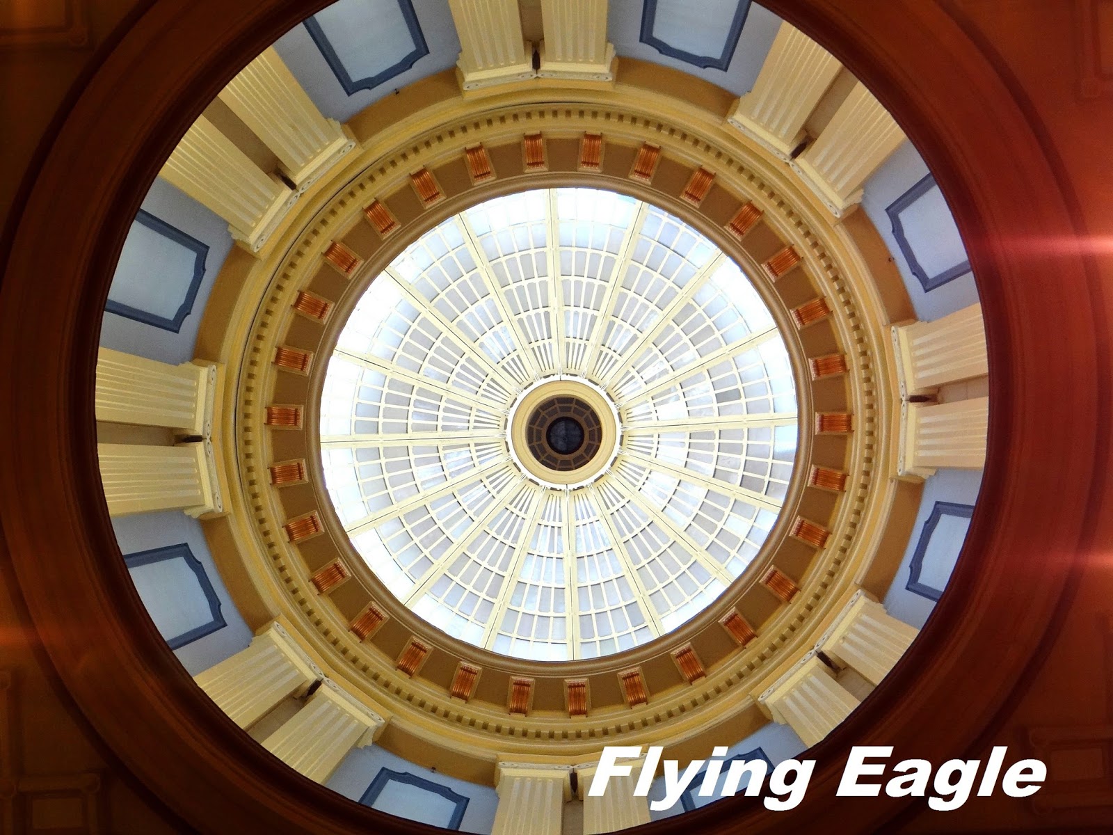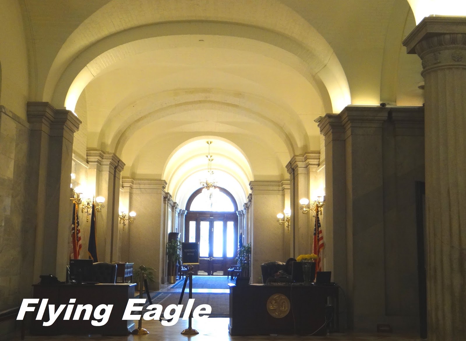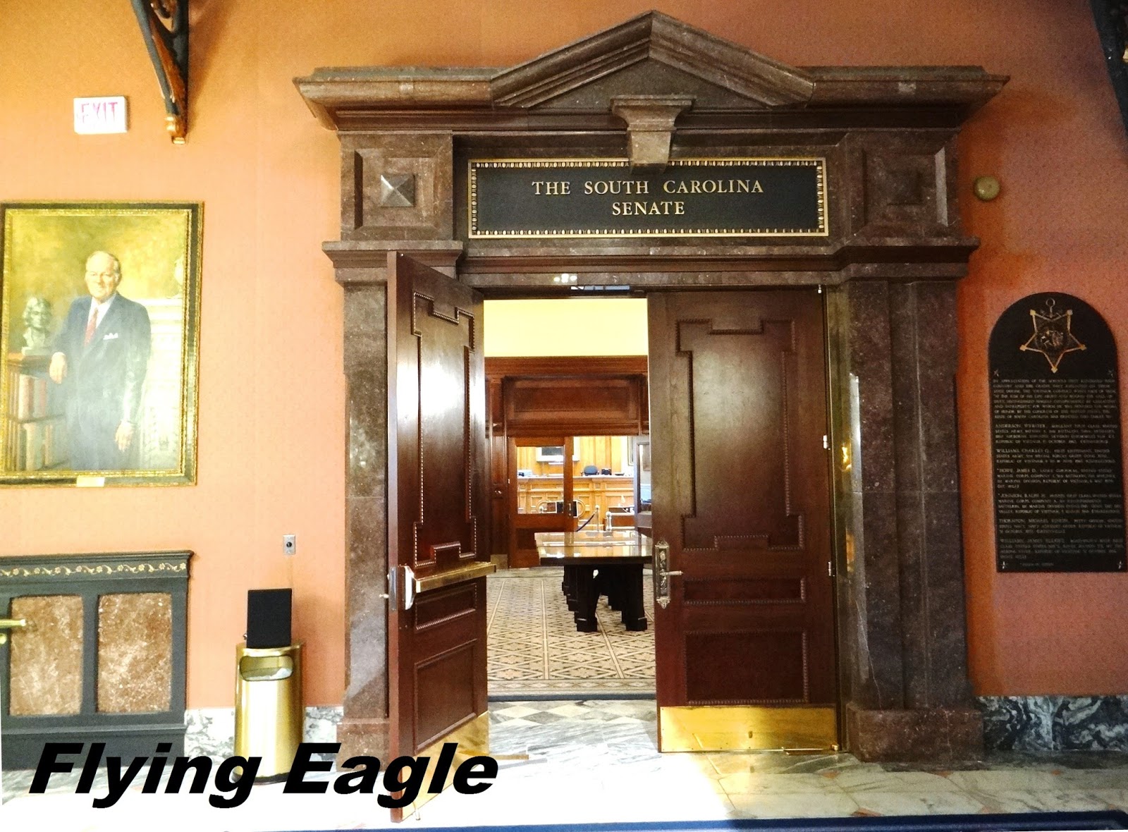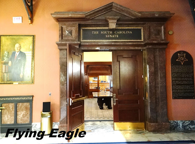 南卡和北卡州名僅差一字,但兩者州府的風格大相逕庭。北卡州府的內外都小巧樸實;南卡的外觀像個公園,內部設計大方氣派之餘卻又溫馨舒適。州長和副州長的辦公室位於一樓,二樓正中央是寬敞的大廳,有很多沙發讓訪客休憩。我們到二樓時有幾位州府員工正在大廳說話,他們邊說話還邊和我們點頭,親切友善的程度讓人印象深刻。大廳上方是很多州府都有的圓頂,但此圓頂是純為裝飾的假圓頂,並非州府外觀那個圓頂。