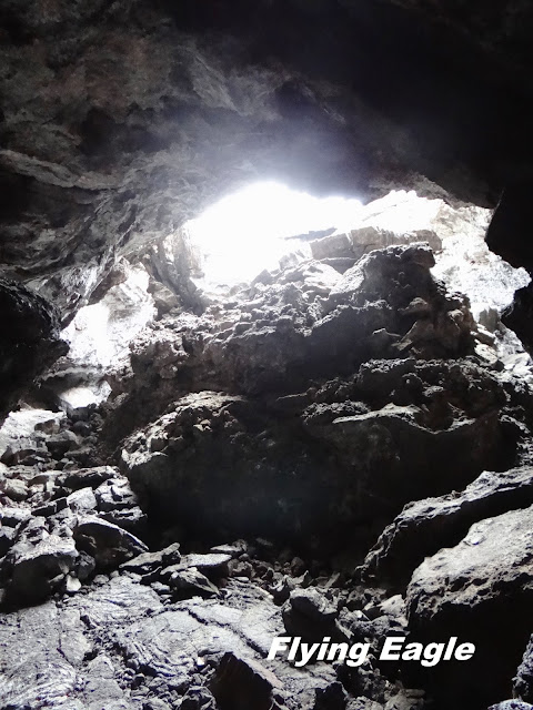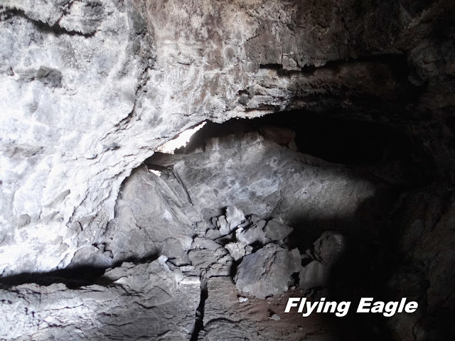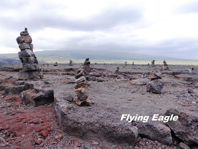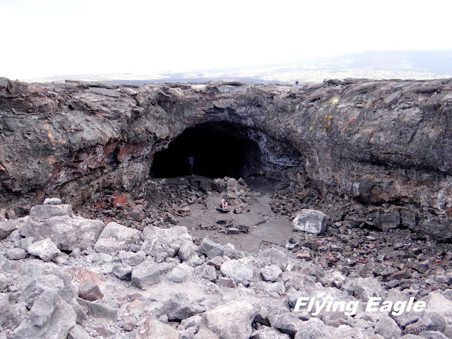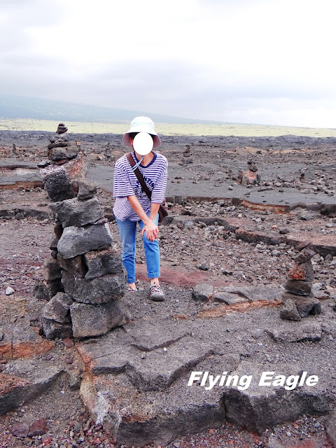 我們抵達大島的那天,發現從機場出來的路上有個不算小的熔岩通道。當時初來乍到,看到路旁的大洞覺得很新鮮,於是就打定主意離開時要在此逗留。這個無名的熔岩通道並不長,通道裡仍有光線,不像夏威夷火山國家公園裡的瑟斯頓熔岩通道一樣伸手不見五指。通道的頂端被人擺滿了通常用作指路的石堆,較高的石堆已近人高。