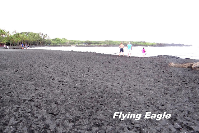 新墨西哥州南部有個白沙國家紀念區,那裡的沙潔白似雪,令人有身處寒冬的錯覺。夏威夷大島則有個Punalu’u Beach,拜火山地質所賜,沙灘的沙是黑色的,所以別名黑沙灘(Black Sand Beach)。黑沙灘位於大島東南,是大島最著名的黑色沙灘。這裡同時也是海龜的棲息地,據說運氣好的話,會看到綠色的海龜躺在沙灘上,可惜我們和海龜緣慳一面。