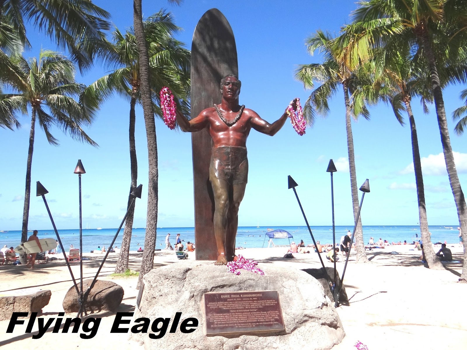 海灘上很引人注目的是Duke Kahanamoku的雕像,展開雙臂,彷彿迎接遊客的到來。Kahanamoku是在威基基出生長大的水上運動員,曾在4屆奧運中得到3金2銀1銅的好成績。在許多人心目中,他就代表了夏威夷。他更推廣了衝浪運動,被稱為國際衝浪之父。